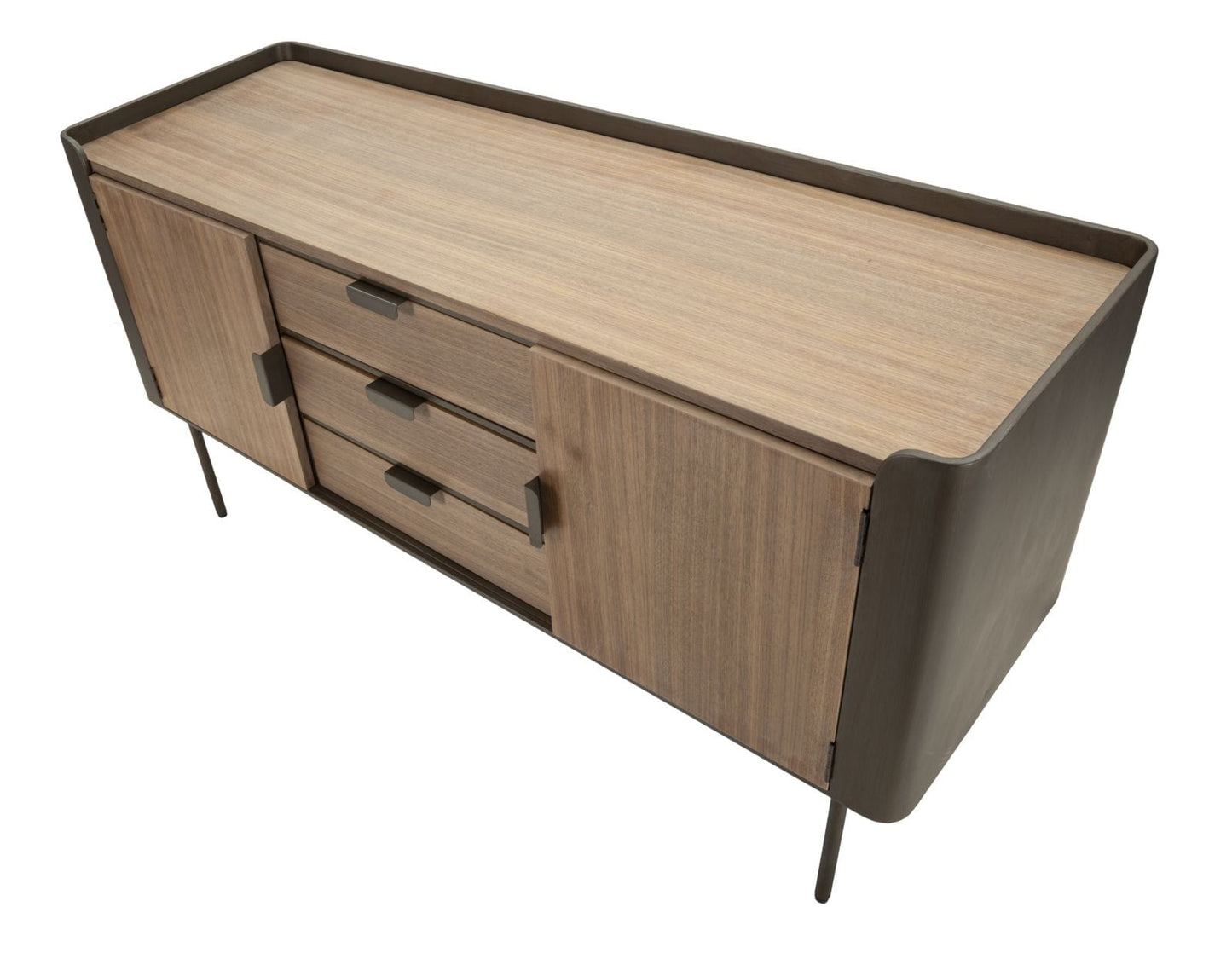 Cabinet in metal and wood with 3 drawers and 2 doors. The particular design with simple but captivating lines makes the item perfect for any type of furniture. Legs to assemble.
