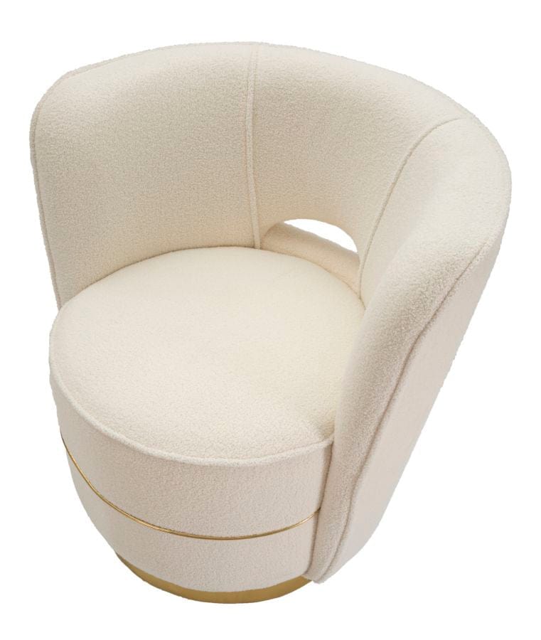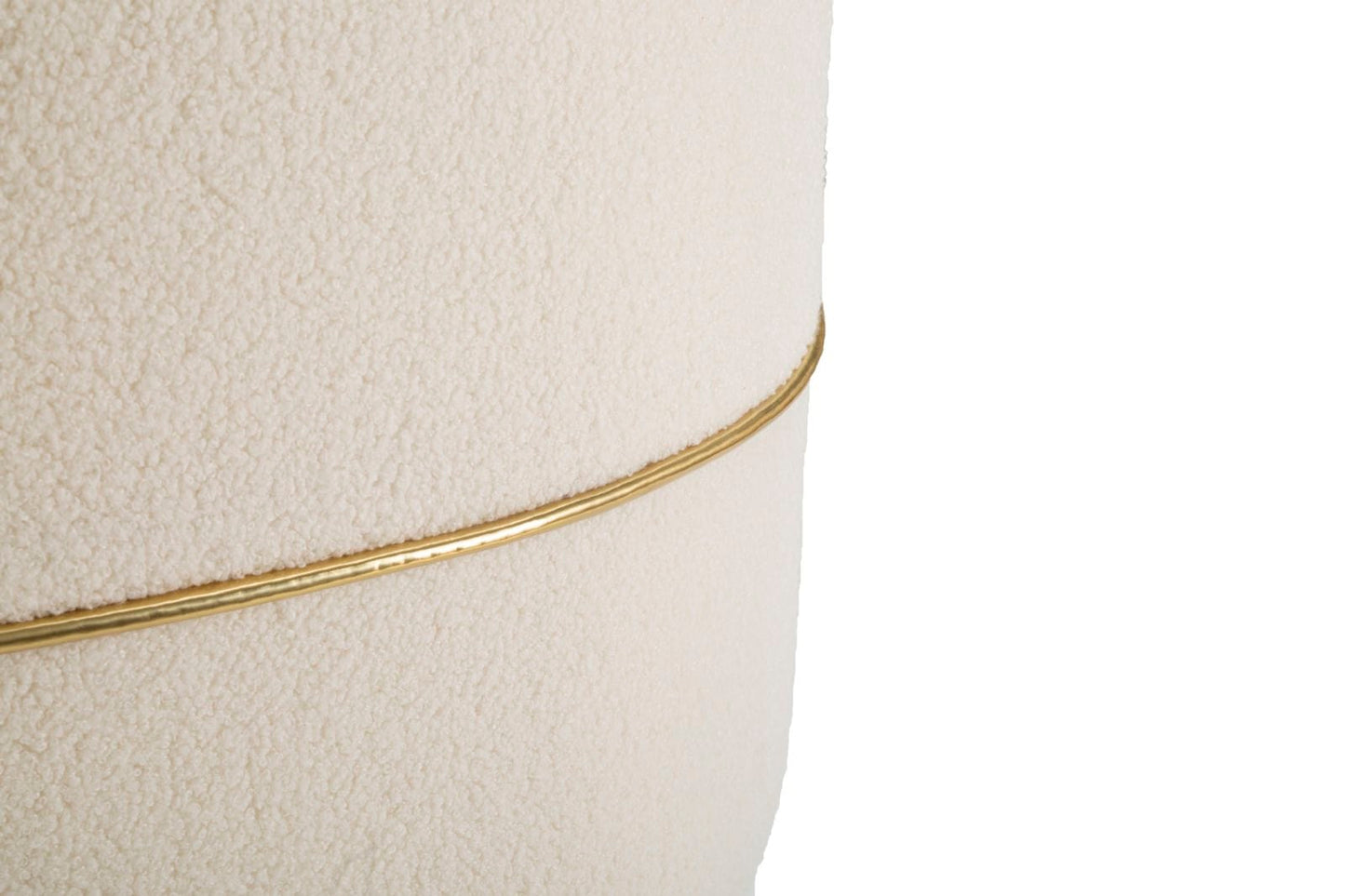 Elegant small round armchair in padded fabric with backrest, with simple and modern lines, embellished with golden decorations. Complete with one cushion.