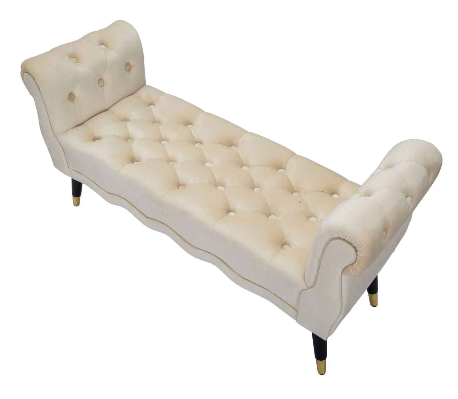 Cream wooden and velvet bench. Majestic seats with a gold finish inspired by the dressing rooms of the great Hollywood divas. Ideal to place in the bedroom or living room to feel like a star.