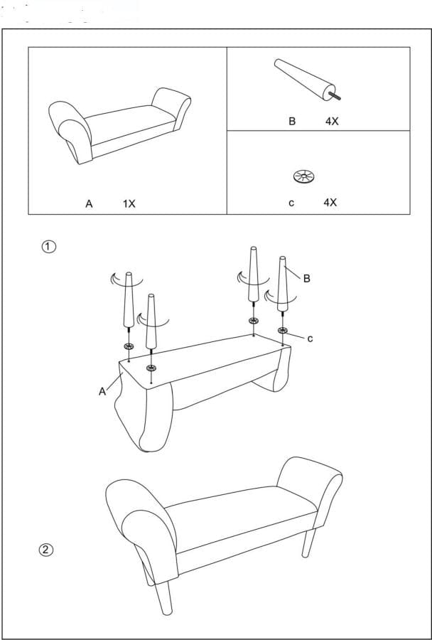 Elegant bench in wood and cream-colored padded fabric. Simple black wooden legs complete the seat giving a touch of class and simplicity to your home.