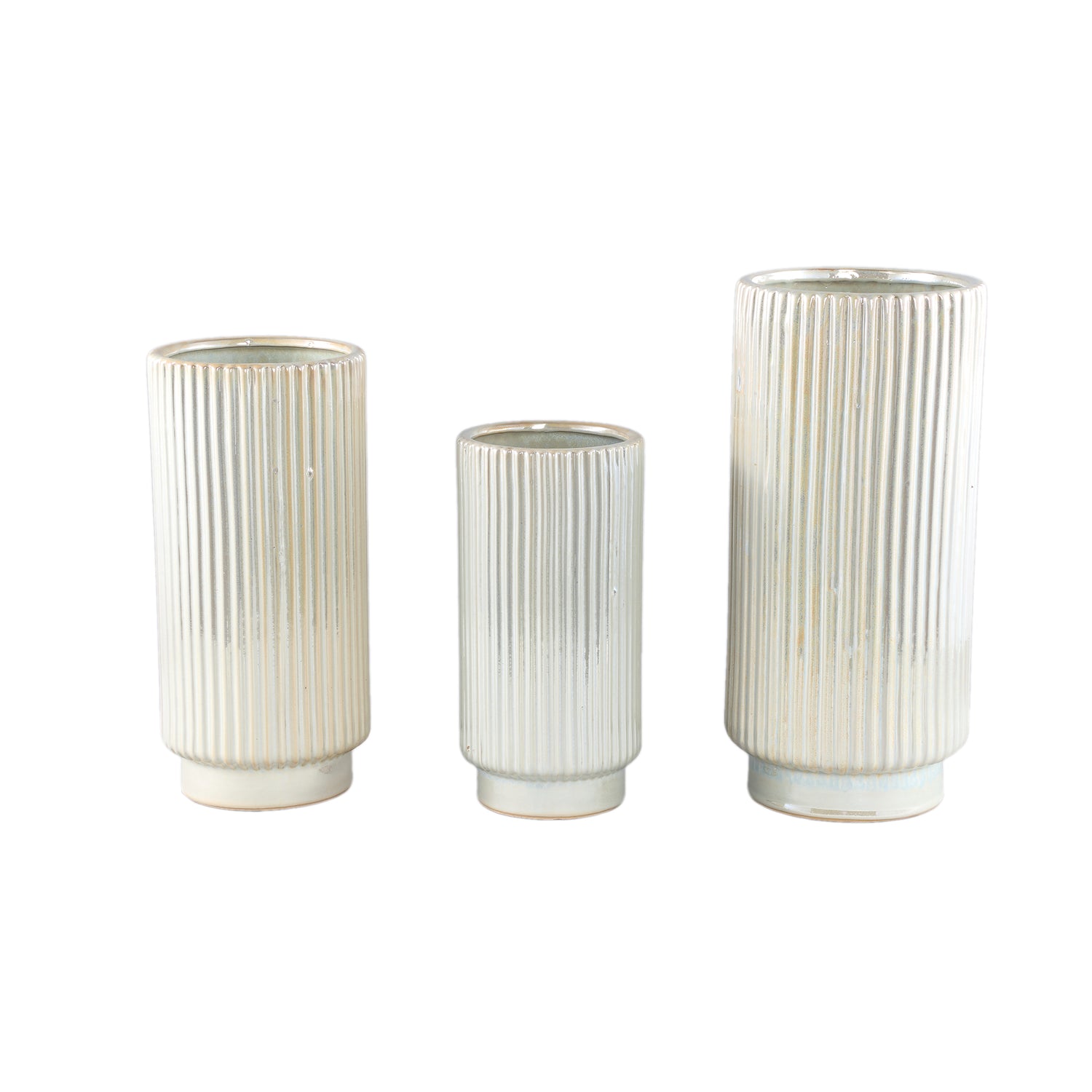 Eviera pearl shiny glazed ceramic pot ribbed round
