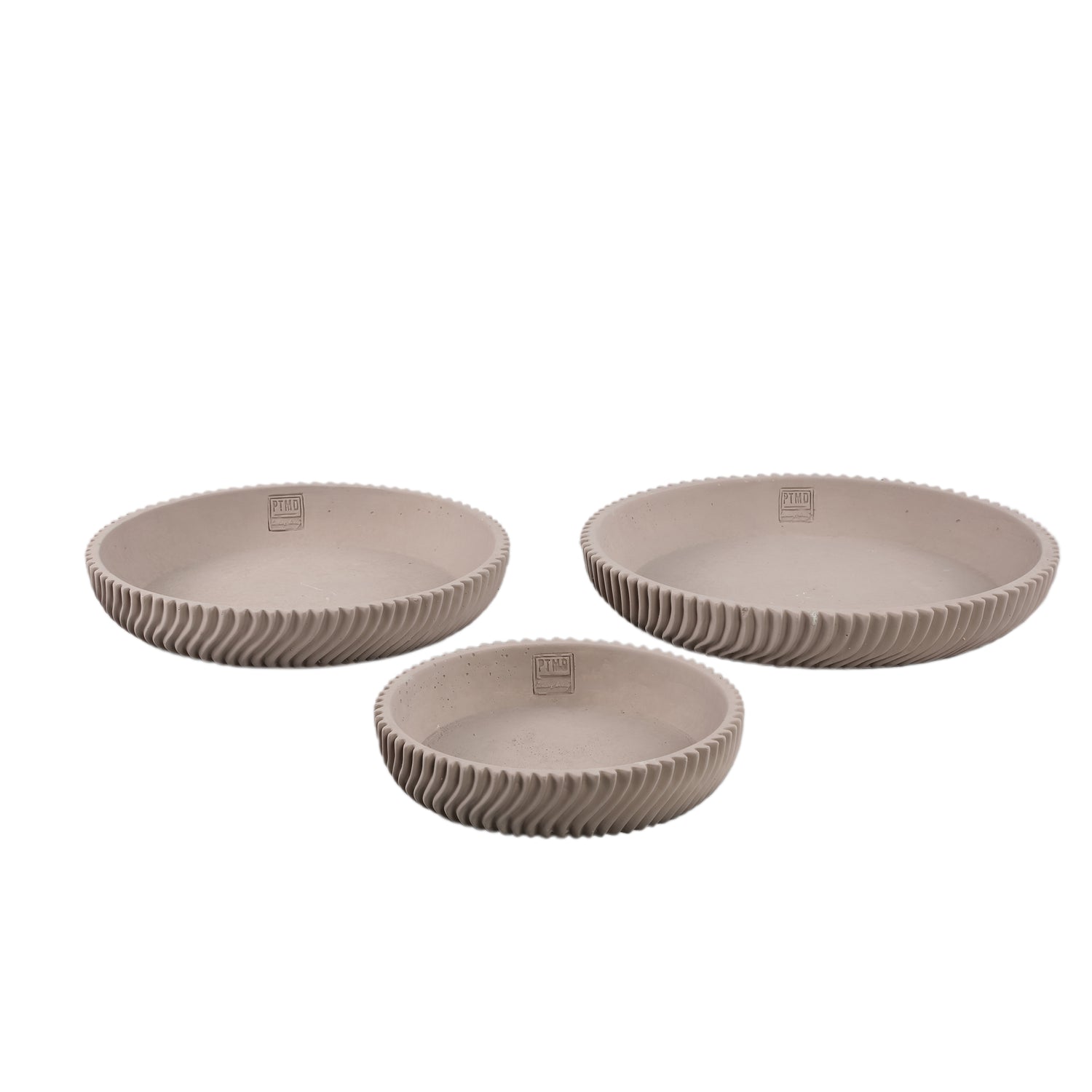 Lianna Beige Cement Round Bowl With Line Pattern L