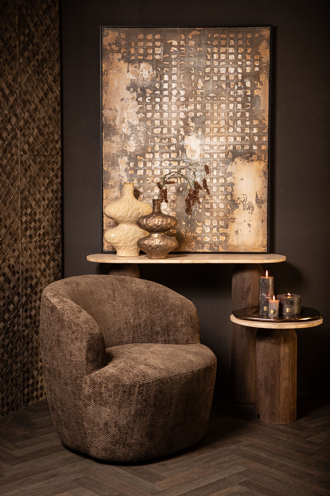 Pathe Brown Canvas Painting Rough Pattern Rect