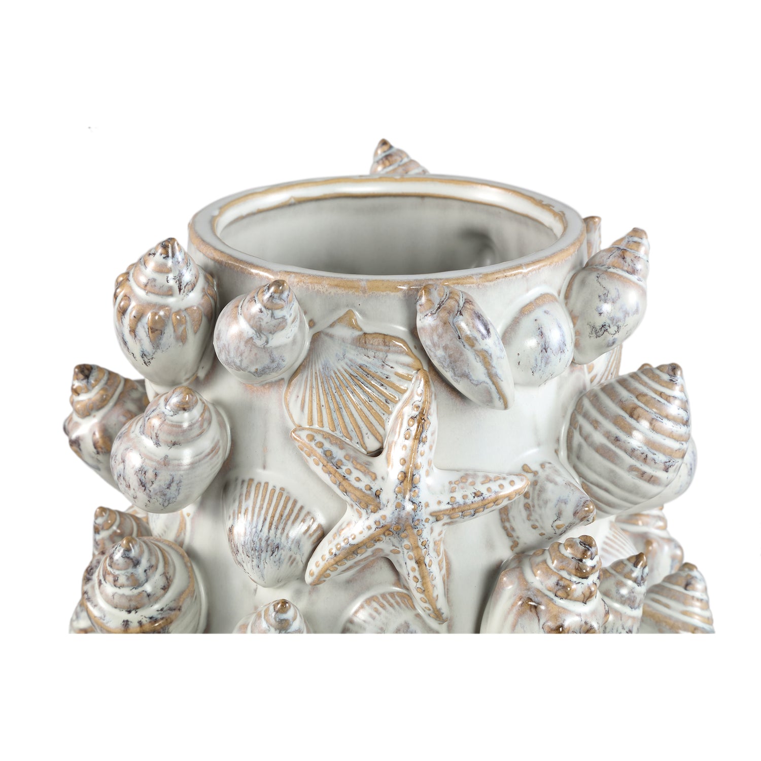 Prince Cream Ceramic Pot 3D Seashells Round HighXL