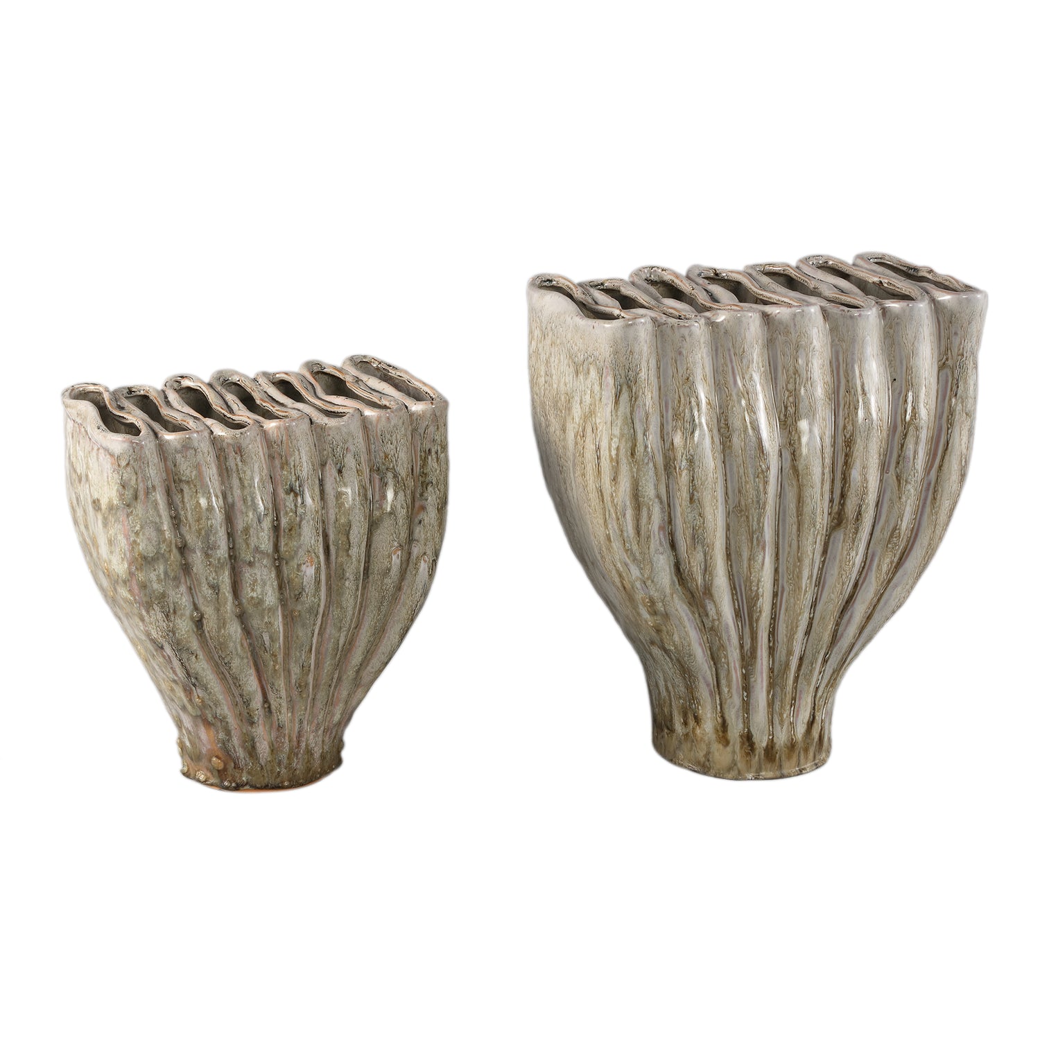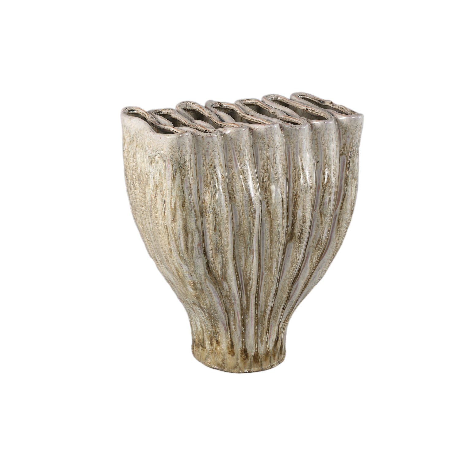 Trish Cream Ceramic Oval Shaped Vase Divided Top L