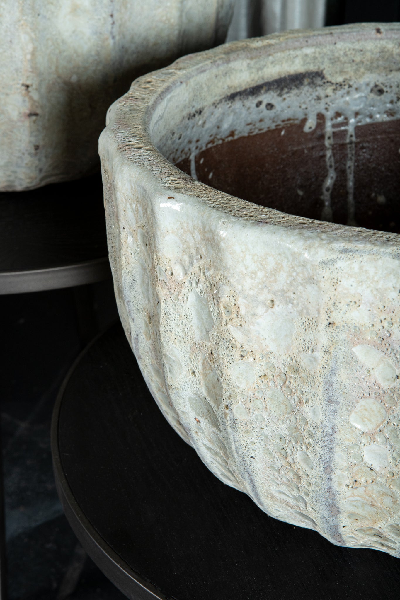 Javier Grey Ceramic Pot Ribbed Round Set Of 2