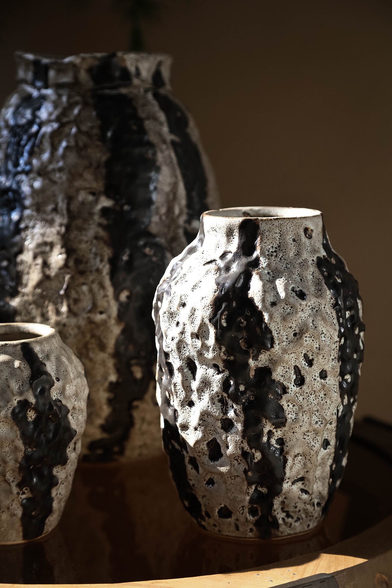 Jayco Brown Ceramic Glazed Pot Stripes Round M