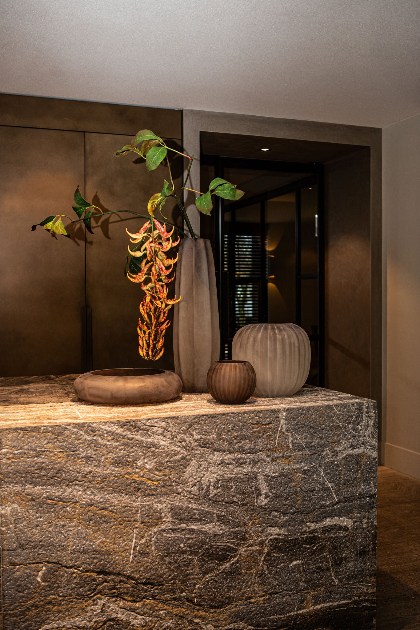 Levente Sand Carved Glass Bowl Shaped Vase Ribbed