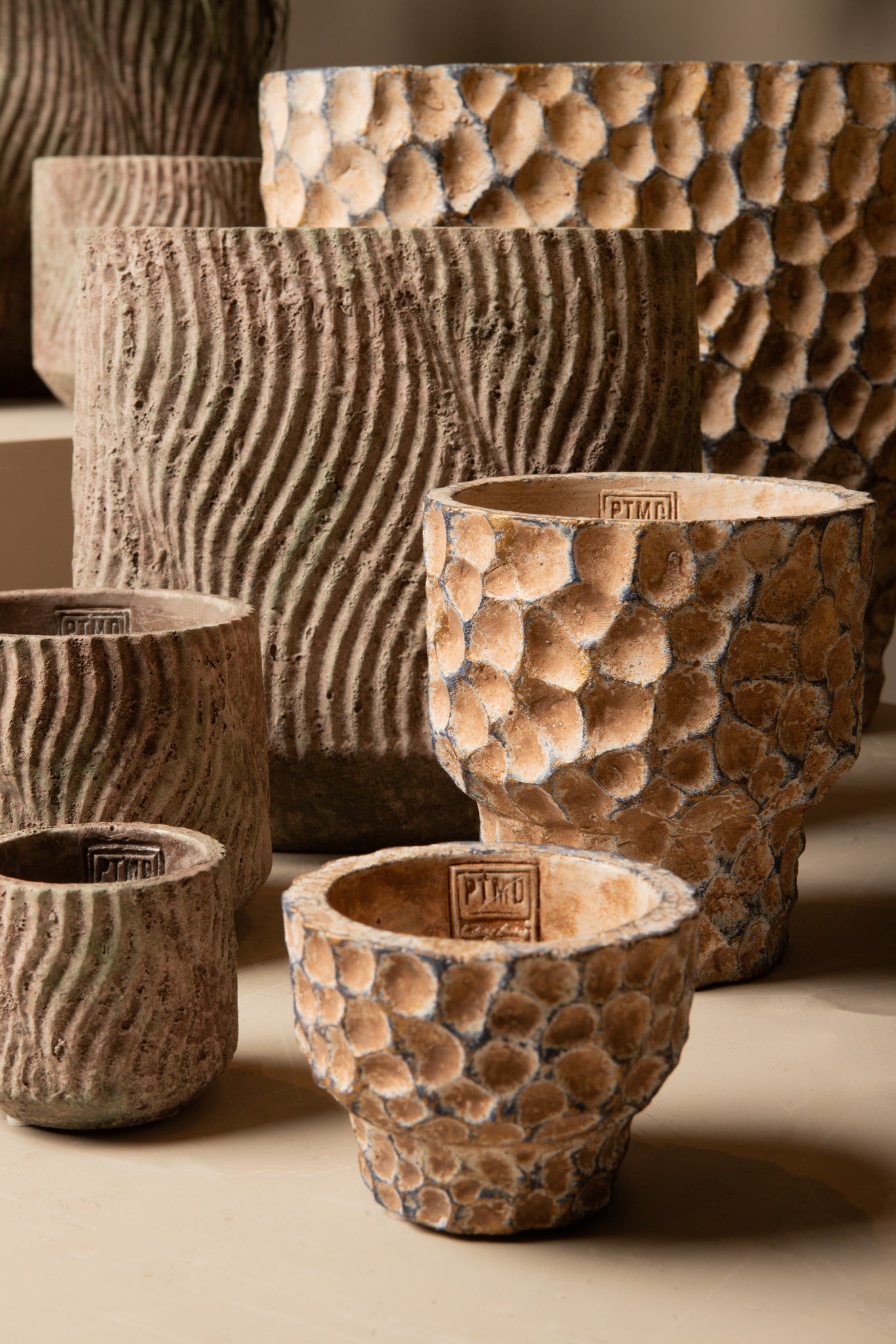 Liselot Brown Oval Cement Pot Stamped Pattern M