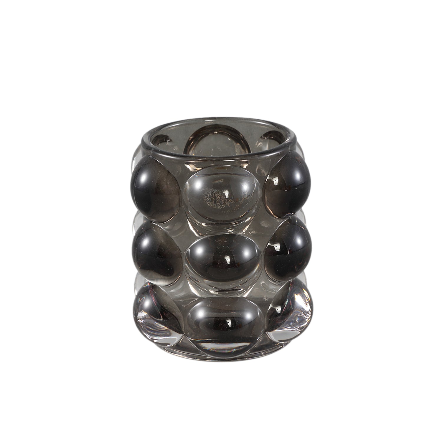 Lonnie Black Glass Tealight Round With Circles
