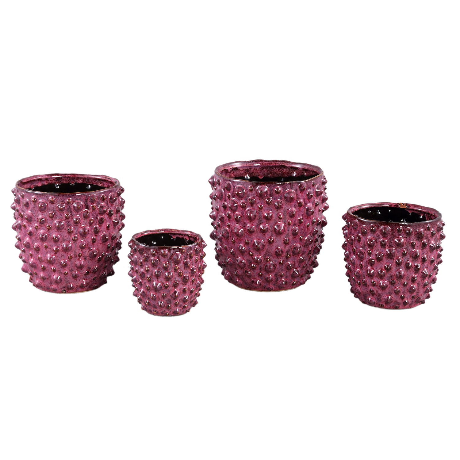 Marel Red Glazed Ceramic Pot Rough Dots Round XL