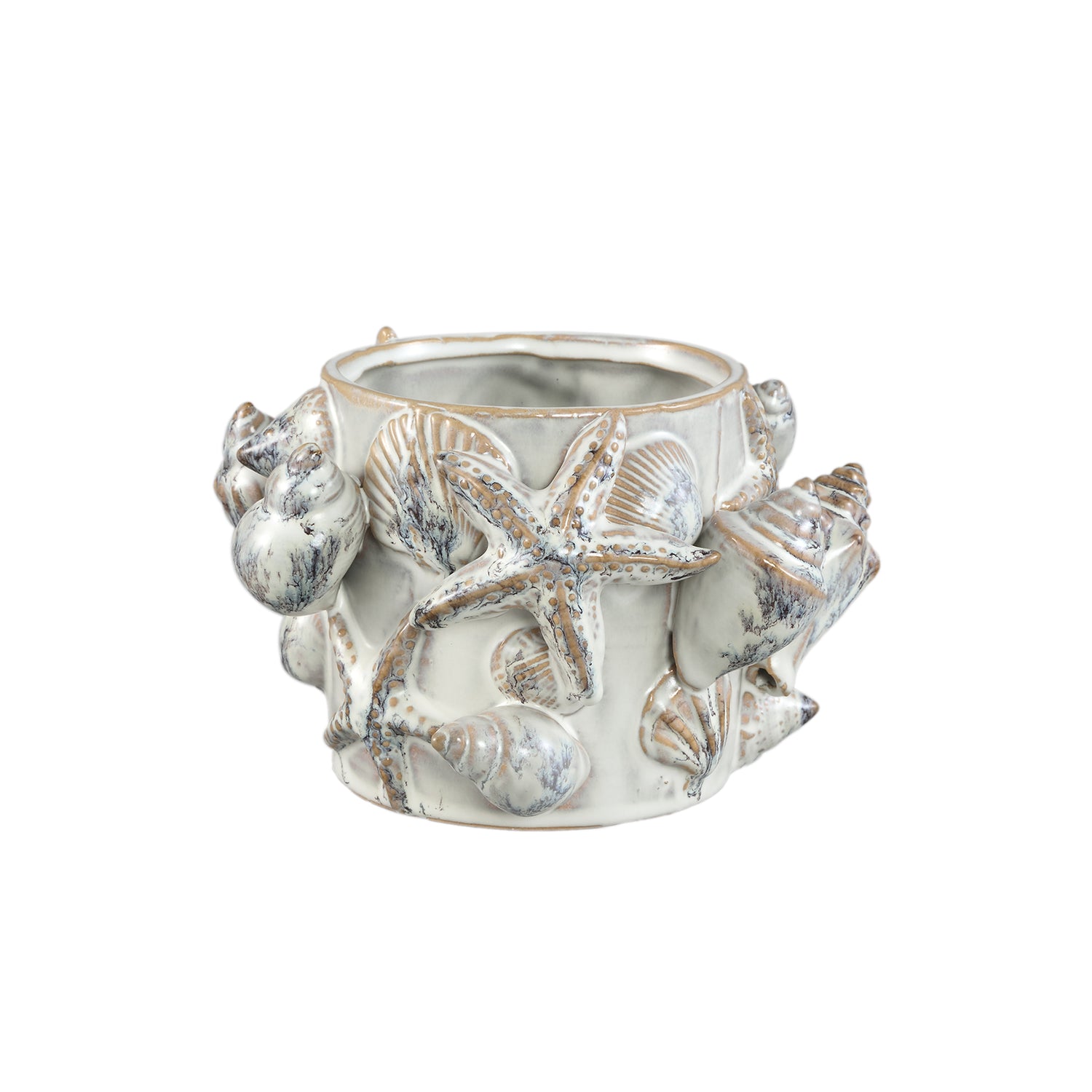 Prince Cream Ceramic Pot 3D Seashells Round Low S