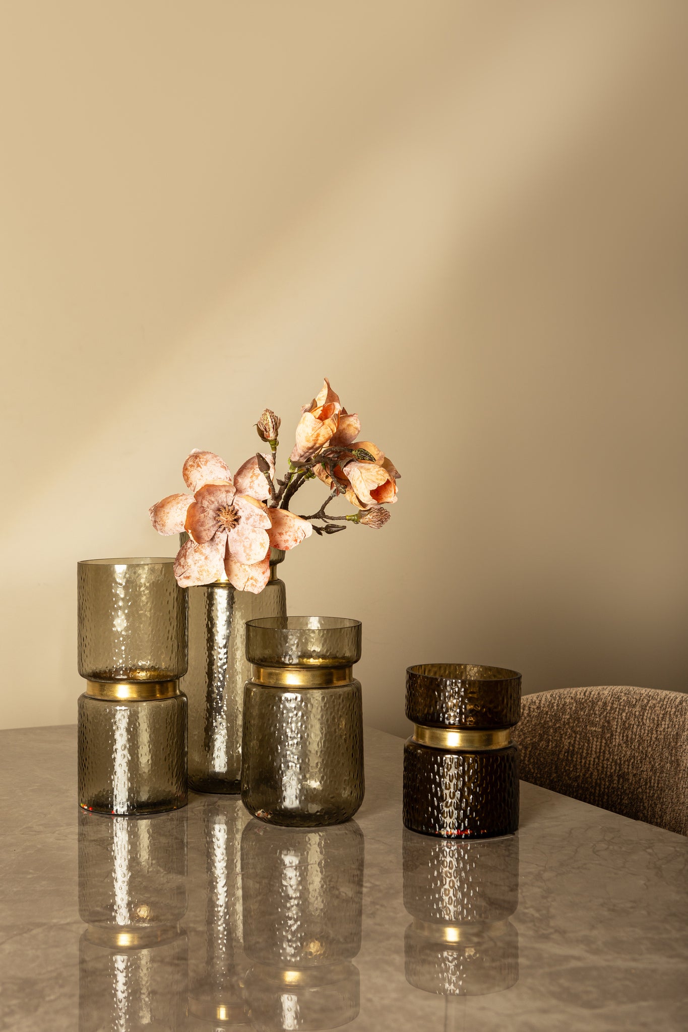 Quilio Brown Green Glass Vase Gold Rim Straight L