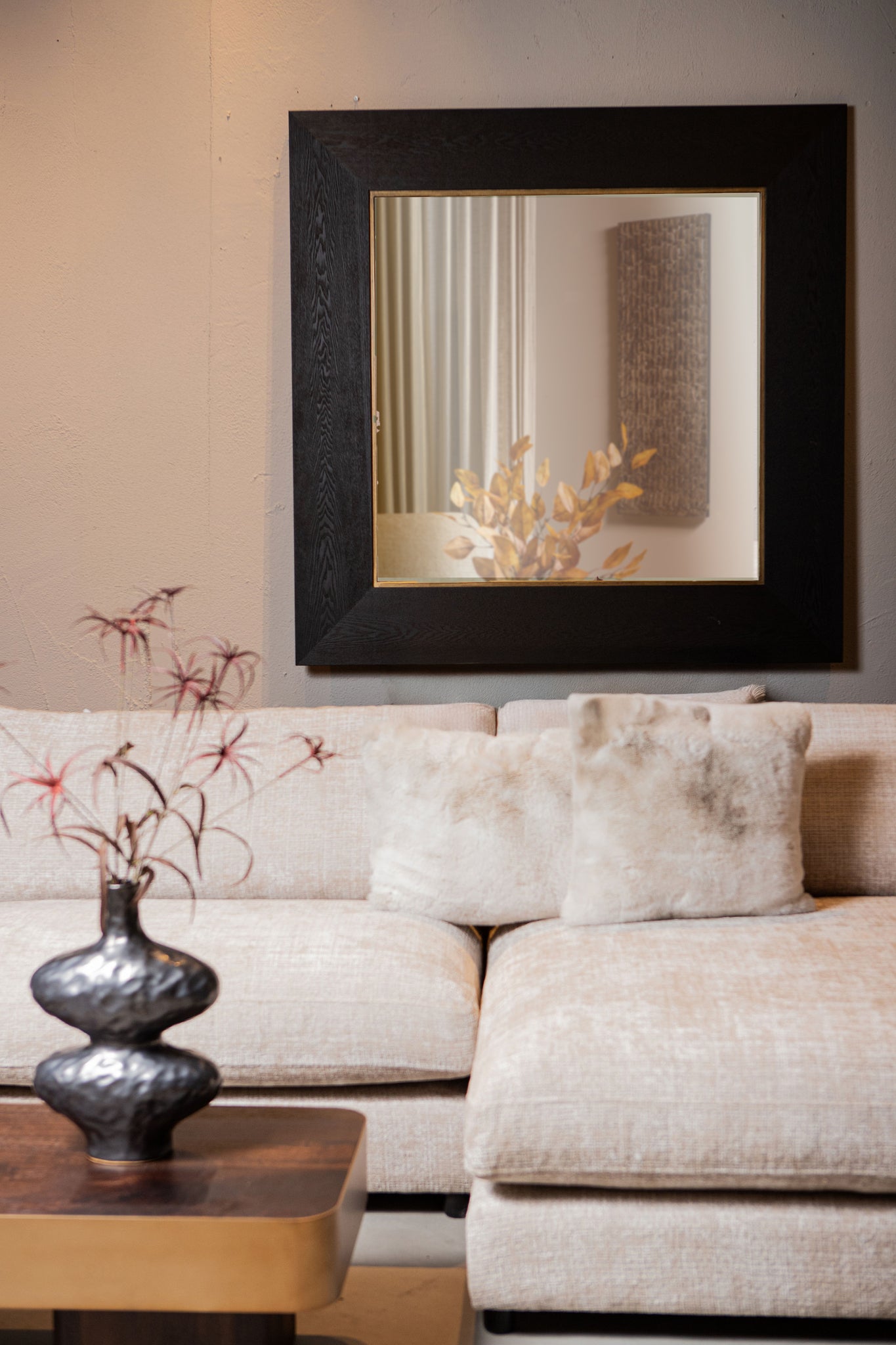 Tiess Black Wooden Veneer Mirror Square Gold Rim