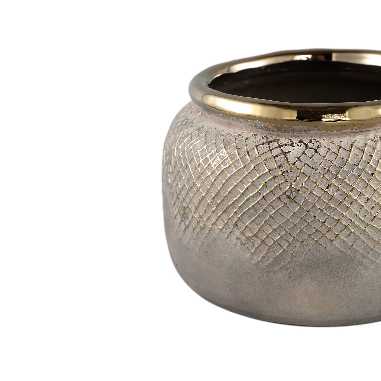 Astleigh Gold Ceramic Pot Ribbed Round Low L