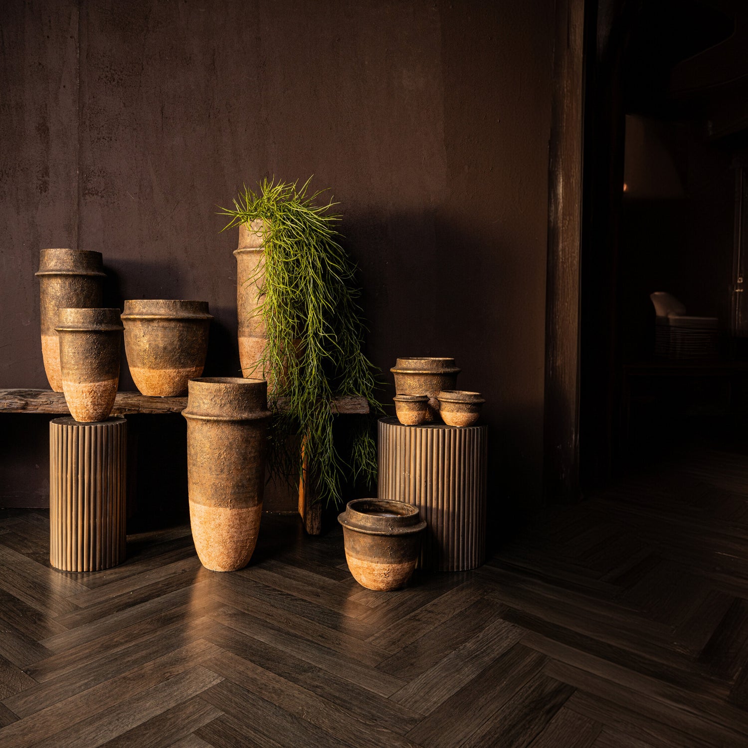 Christenee Grey Half Brown Cement Round Pot High L