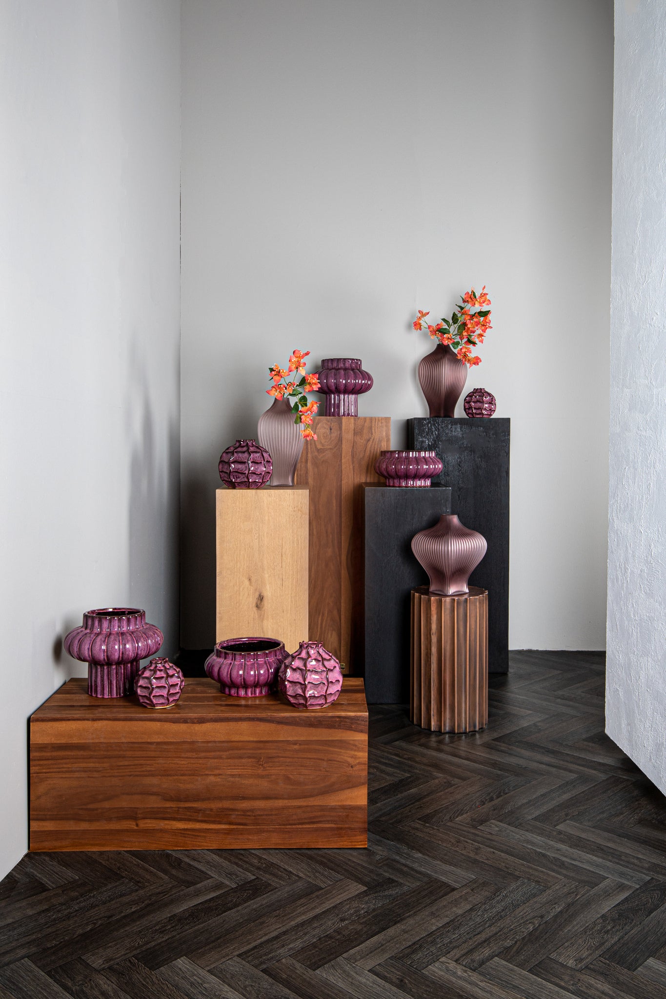Halde Light Purple Solid Glass Vase Ribbed Wide