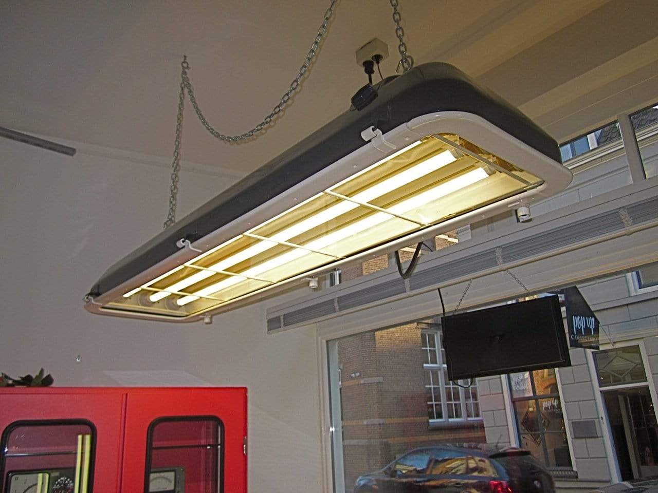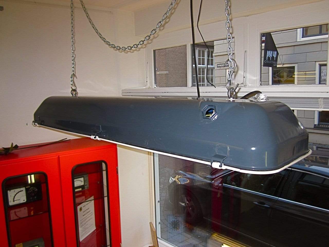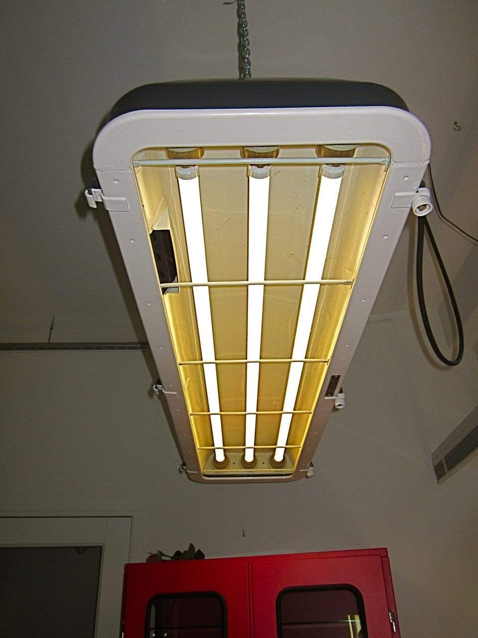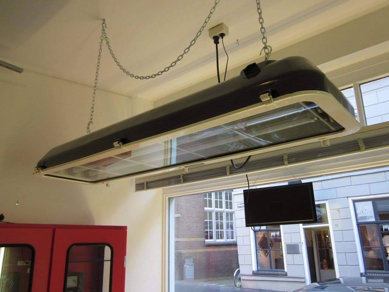 Deze lampen worden gestraald en gepoedercoat. Omgebouwd naar- en voorzien van 3 DIMBARE LED buizen in ‘warm white’ of ‘cool’ white en nieuw bekabeld.