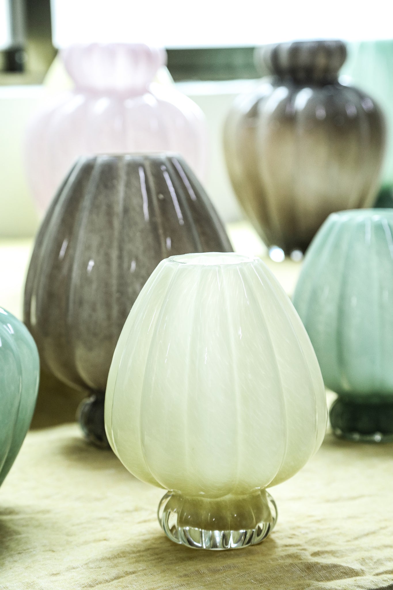 Syamer Cream Milkglass Vase Ribbed On Foot S