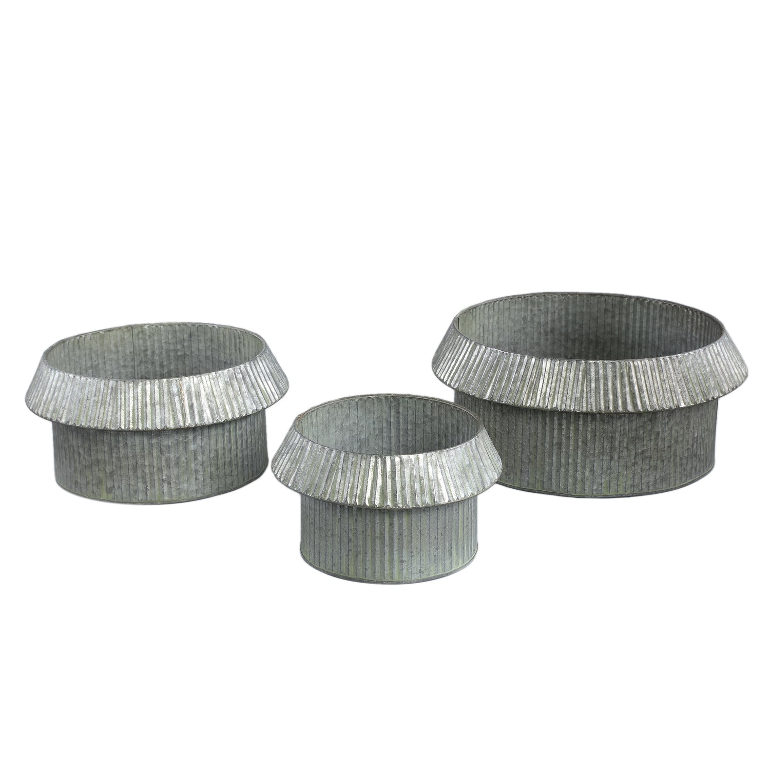 Vooda Grey Zinc Ribbed Low Pot Round Set Of 3