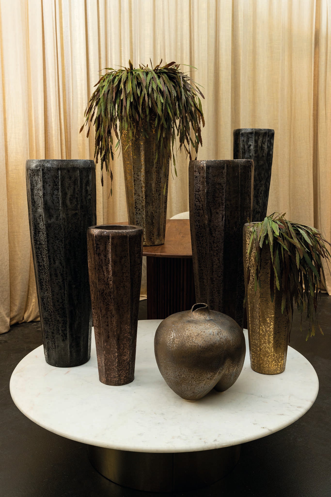 Adiane Brass Brushed Alu Sheet Pot Ribb Round SV2