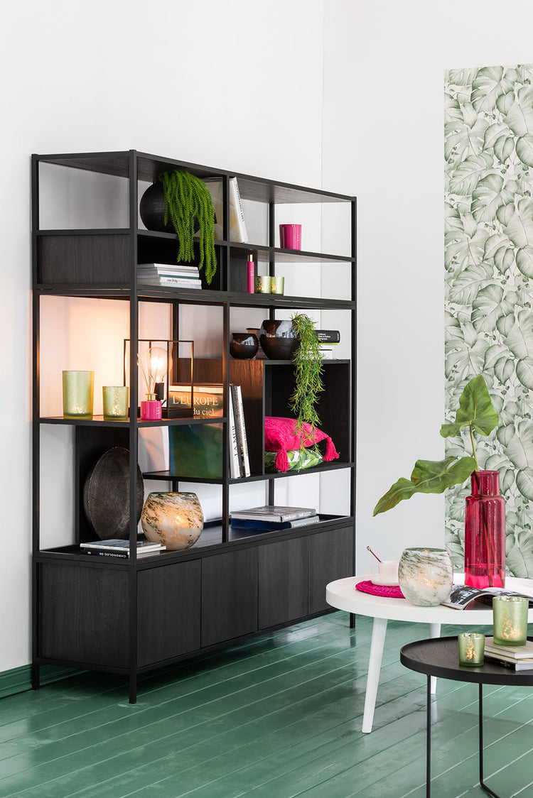 Duana Playful Black Iron Open Cabinet High