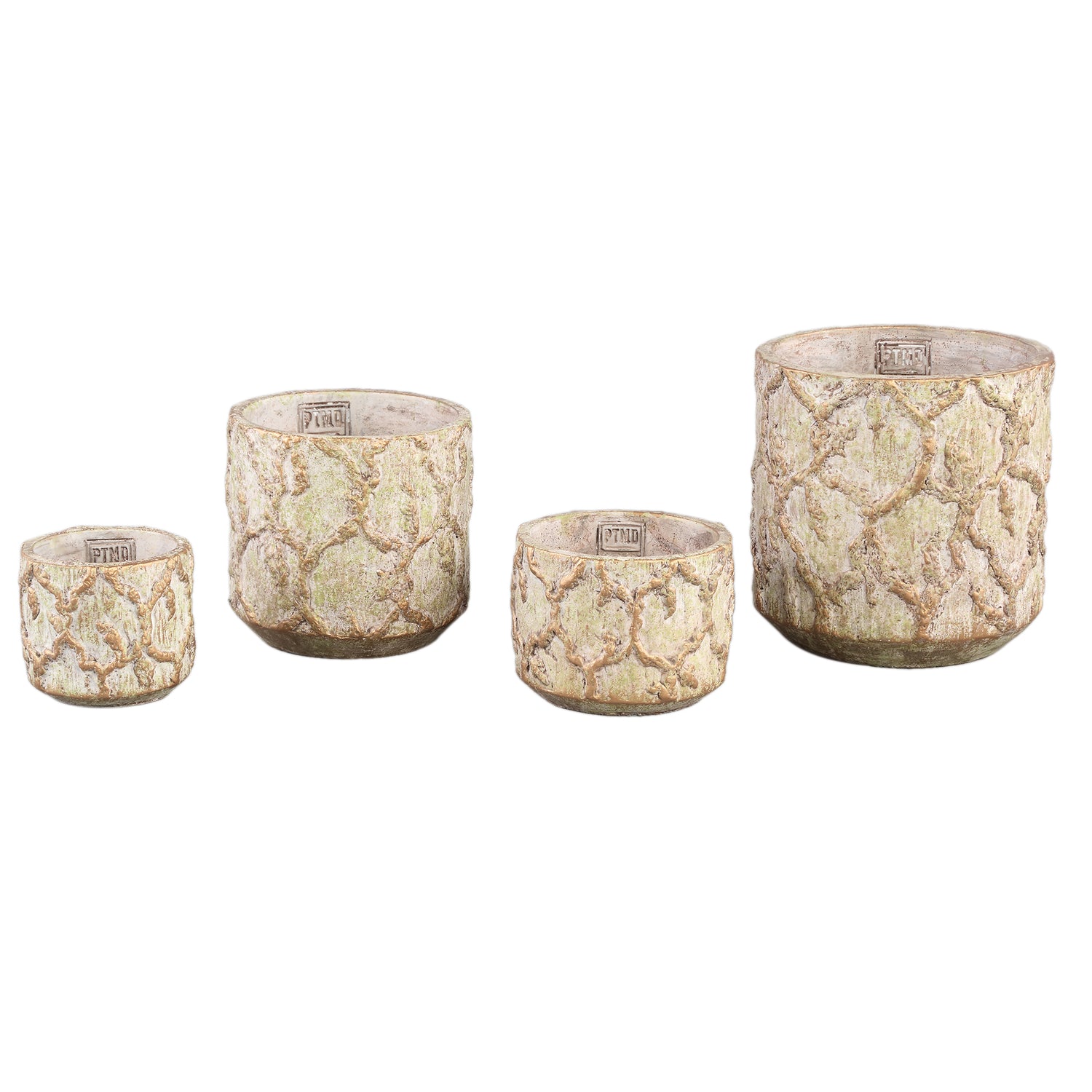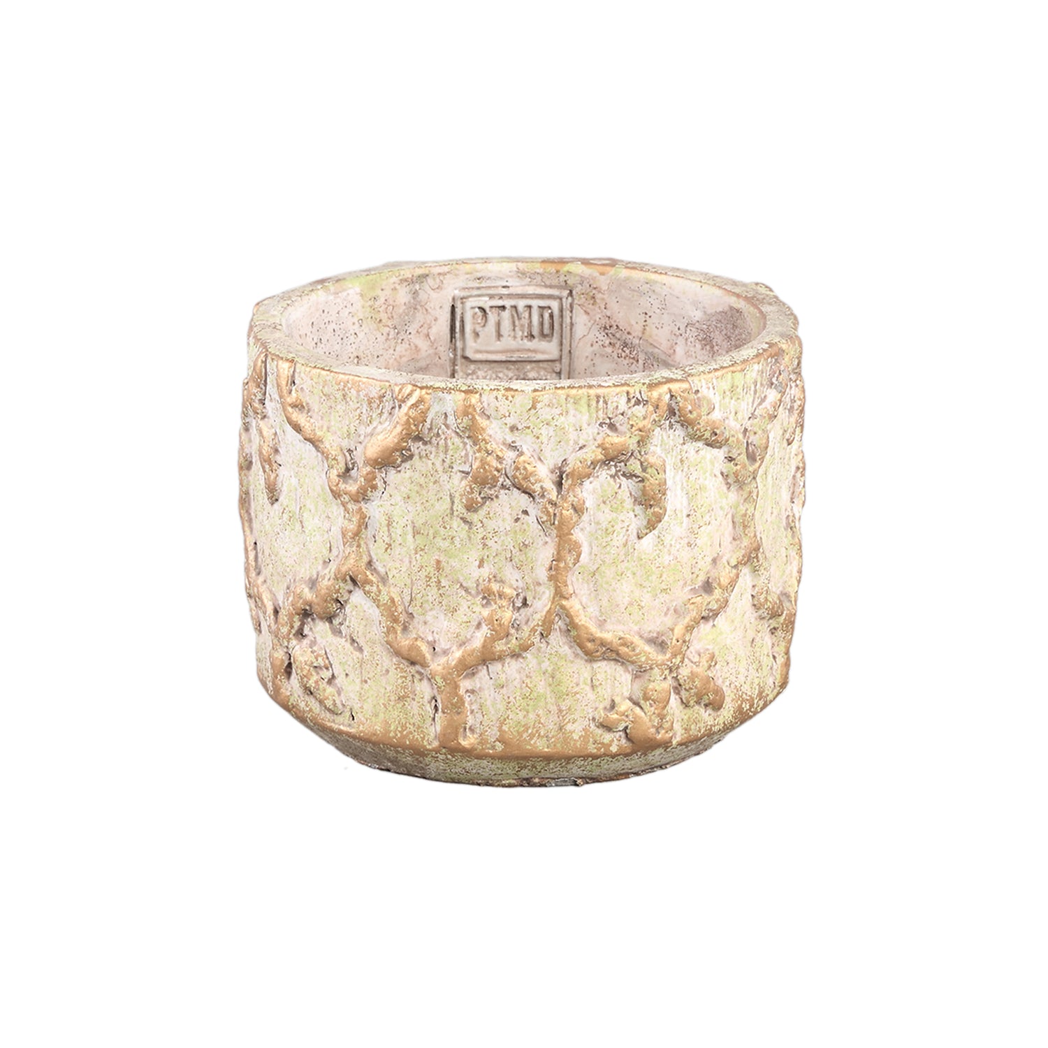 Adina Cream Cement Pot Round Gold Green Pattern S