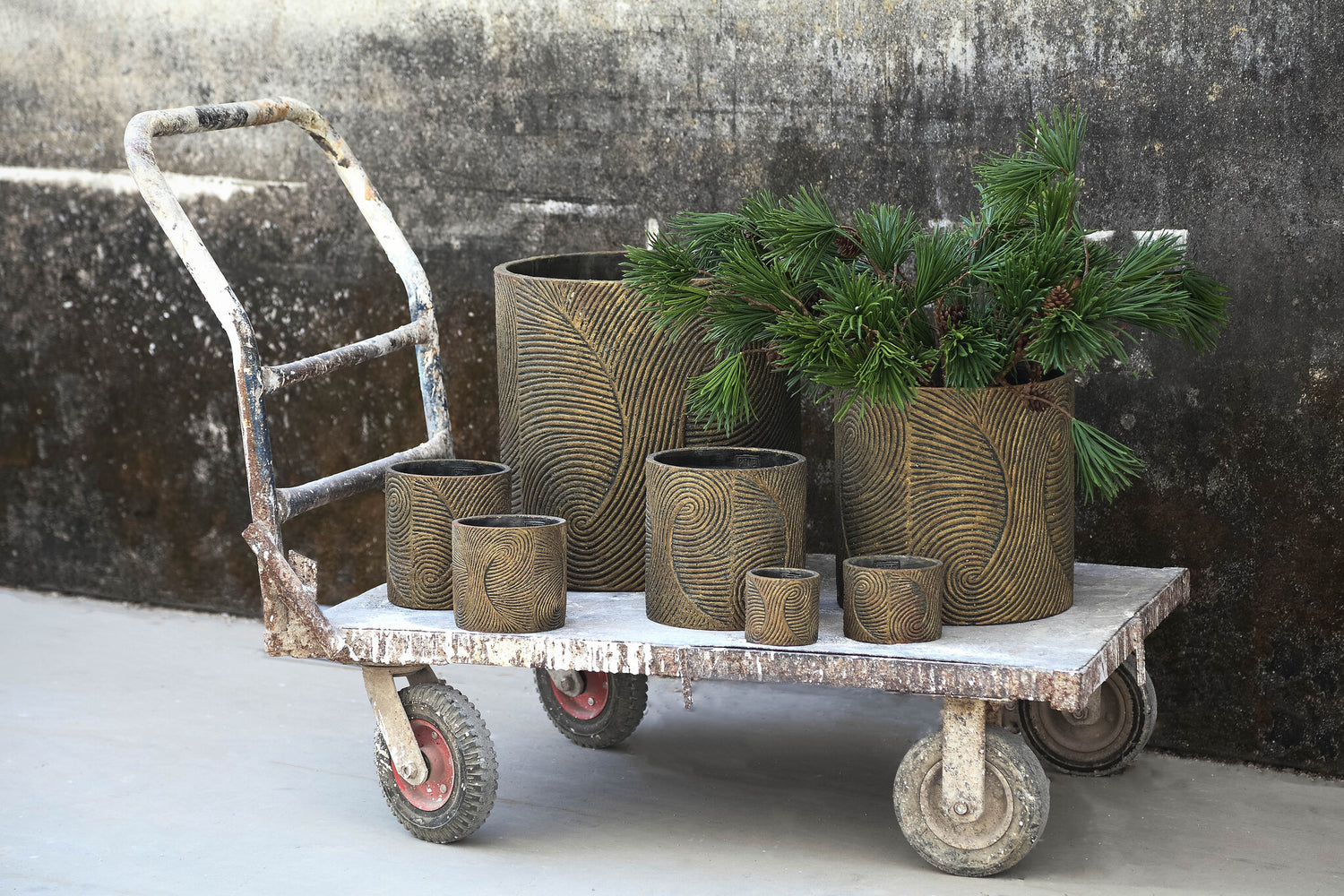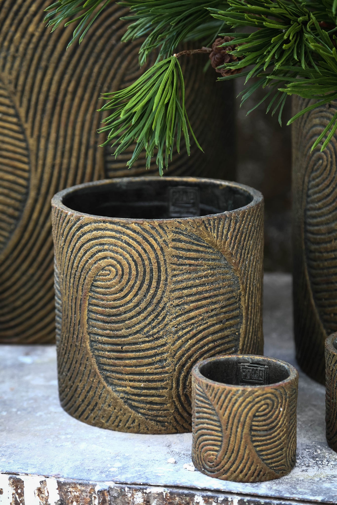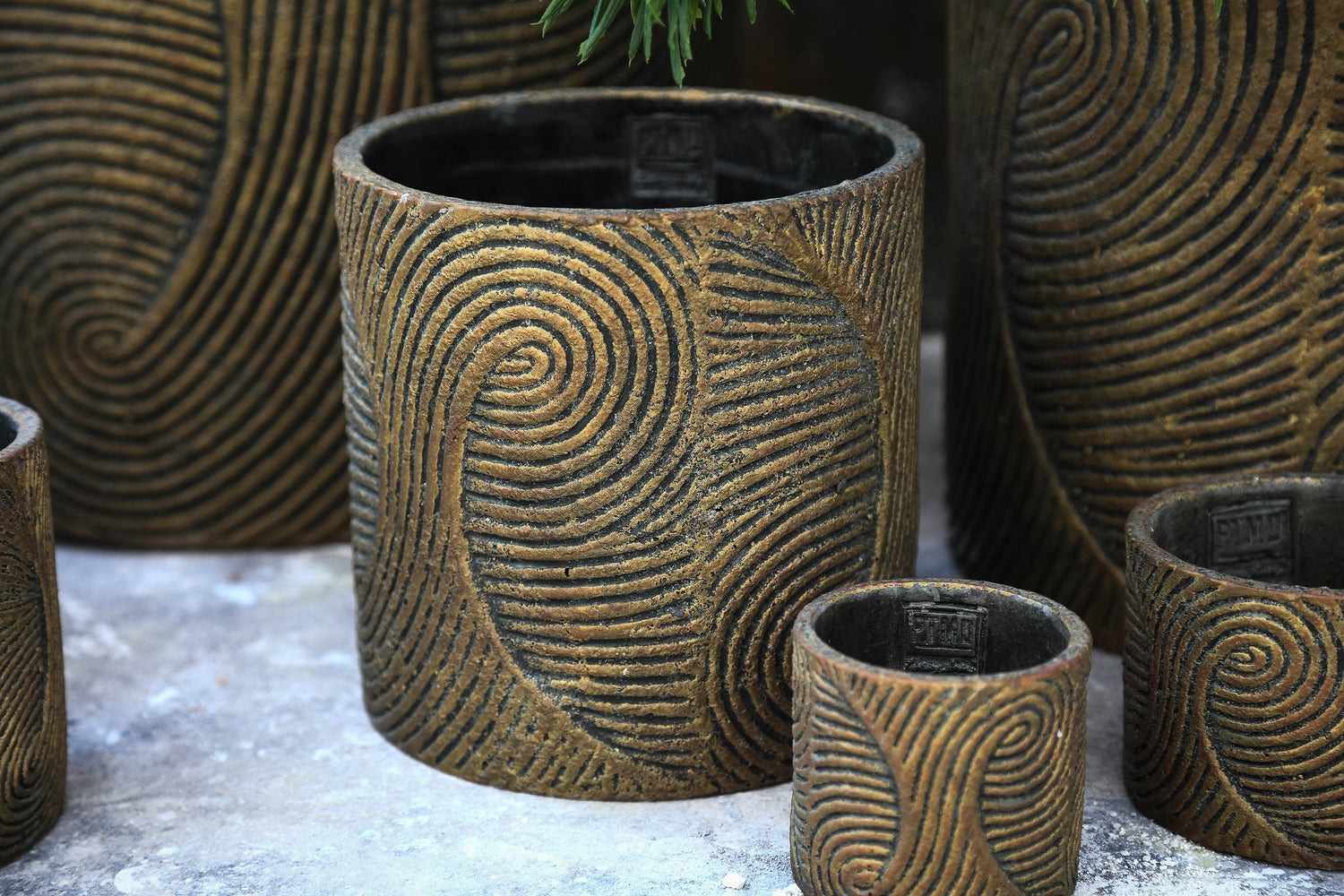 Erich Black Cement Pot Swirl Pattern Round Big L