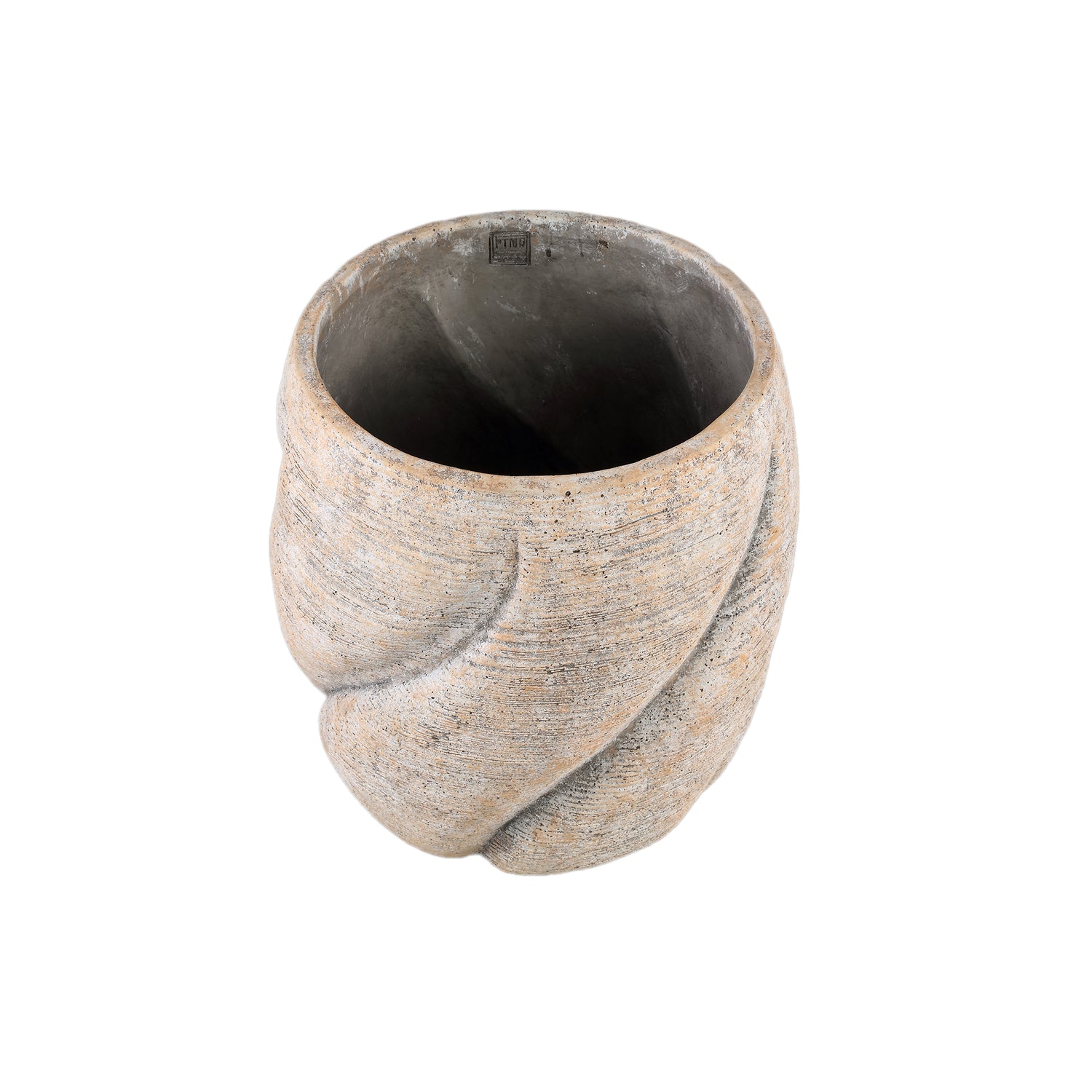 Evanthia Taupe Cement Pot Swirl Round L
