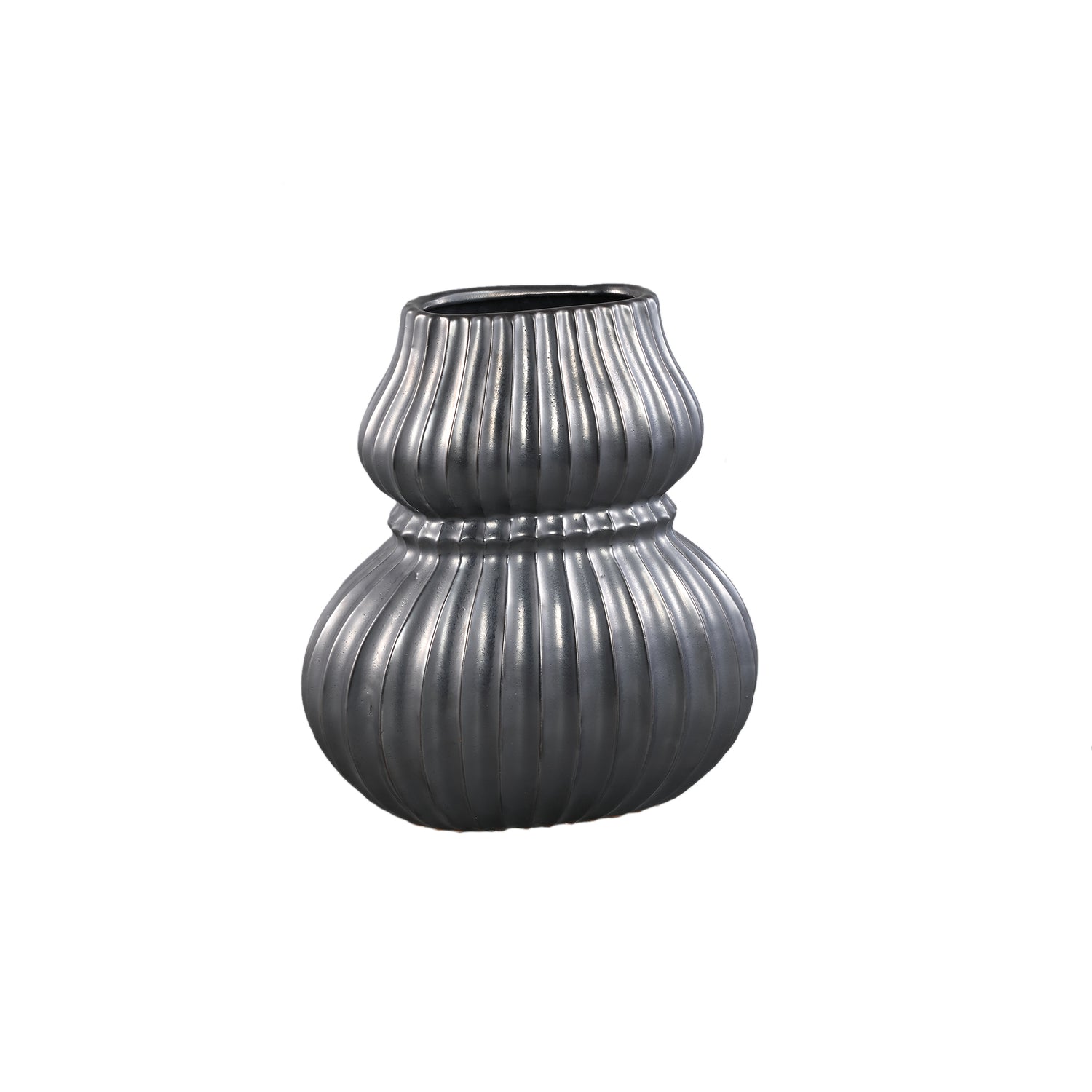 Halta Black Oval Ceramic Bulby Vase Ribbed M