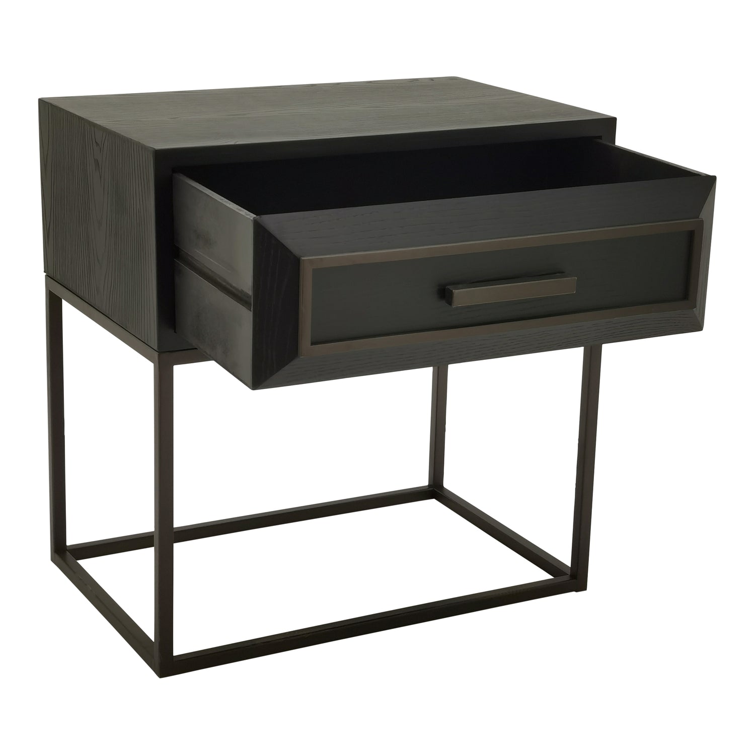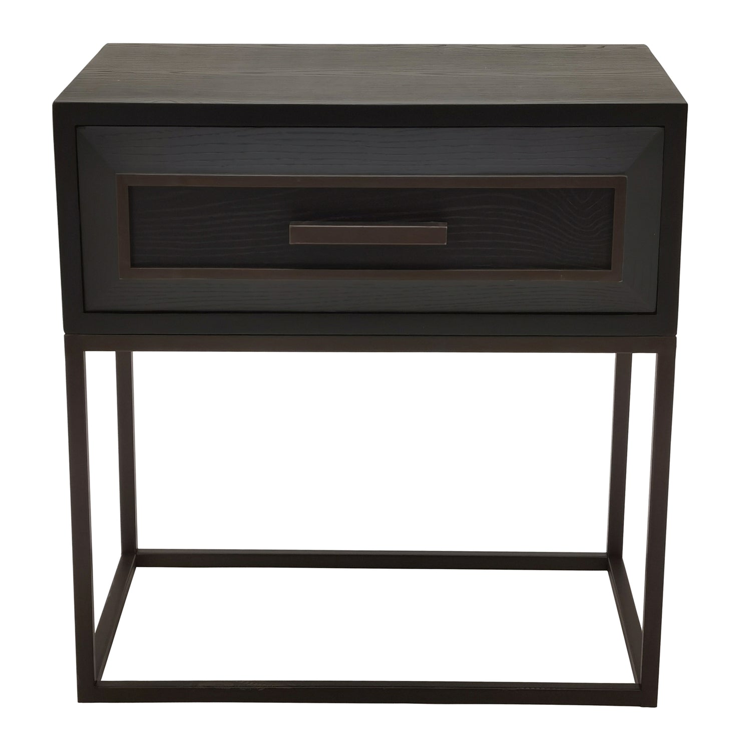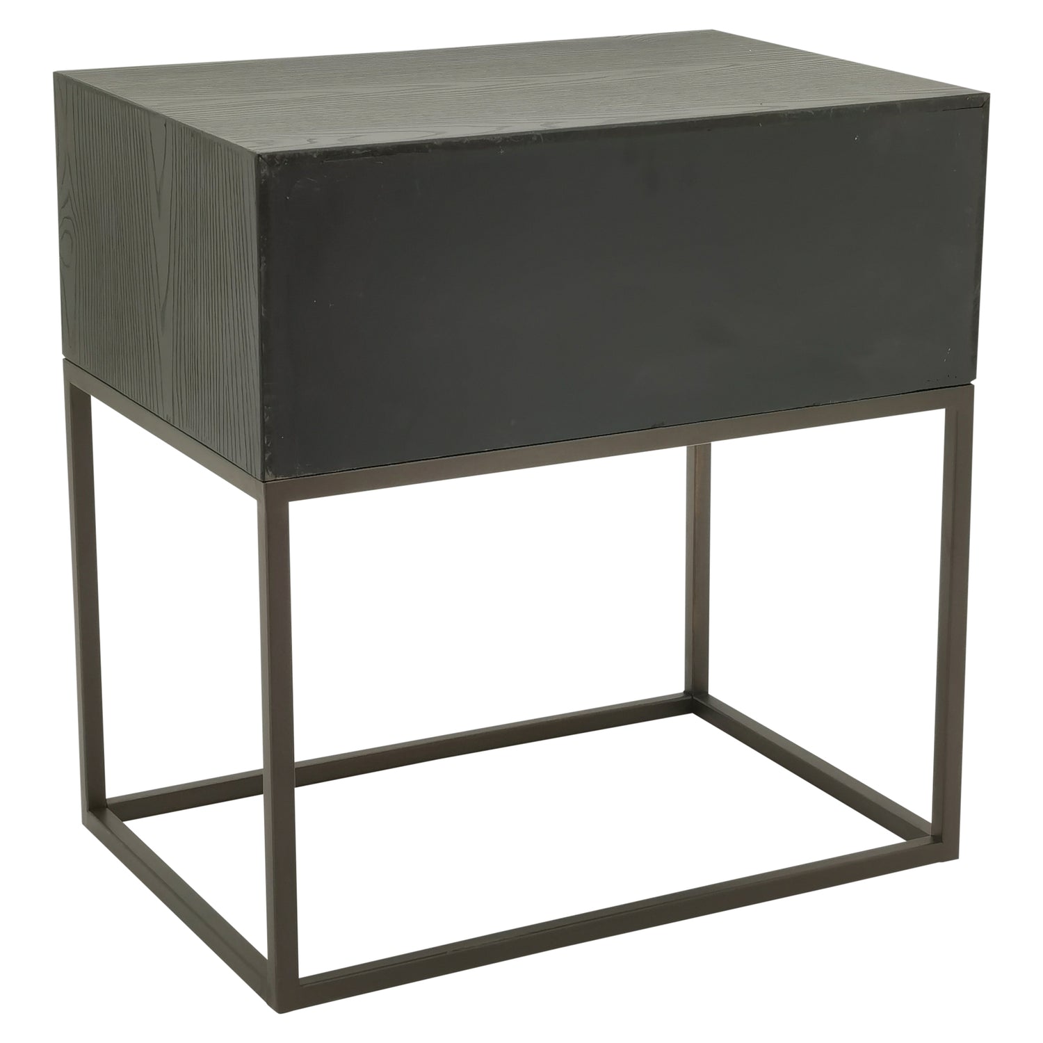 Lixly Black Wood Iron Frame Bedside Cabinet