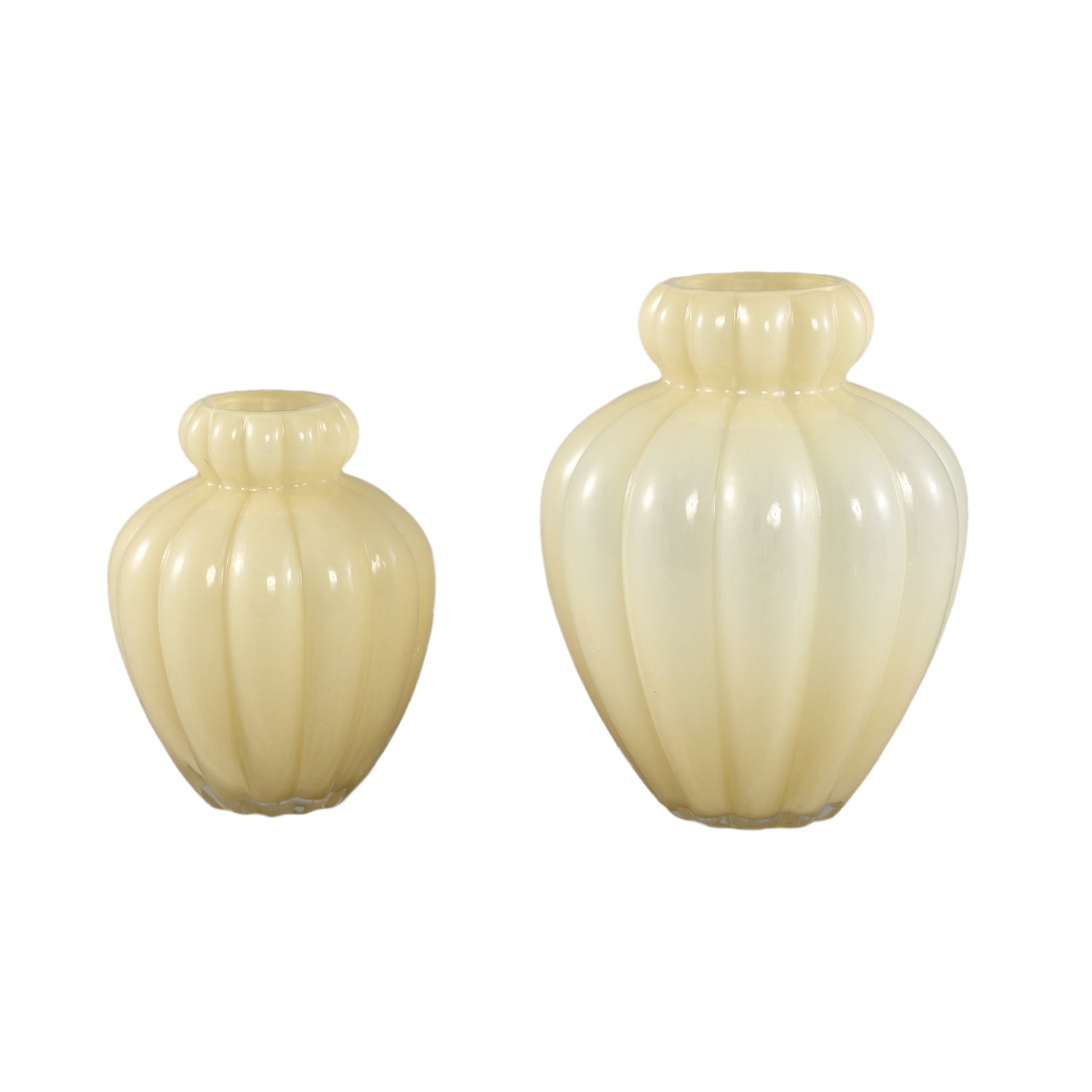Syamer Cream Milkglass Vase Ribbed Small Border L