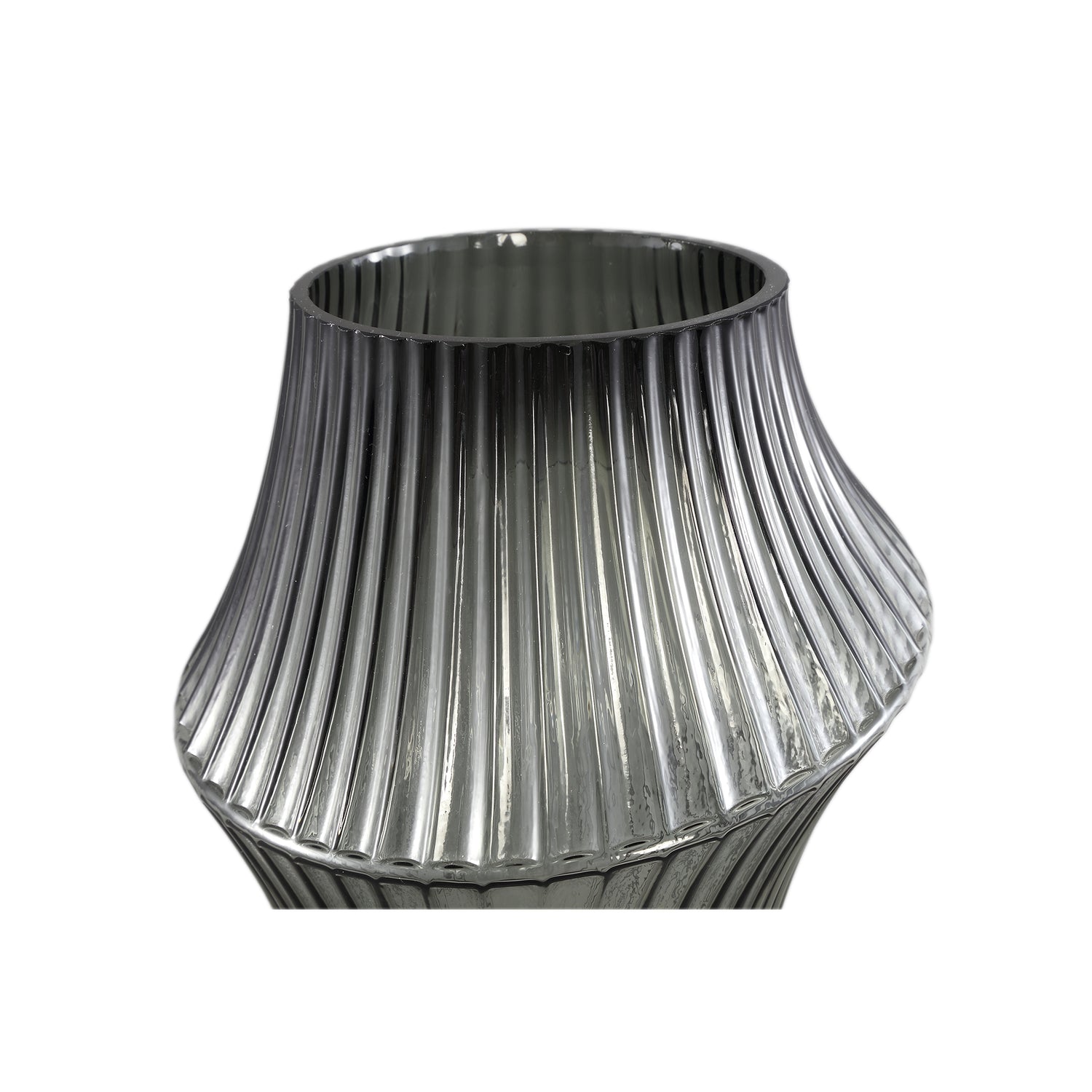 Yulaa Grey Solid Glass Vase Oblique Shape L