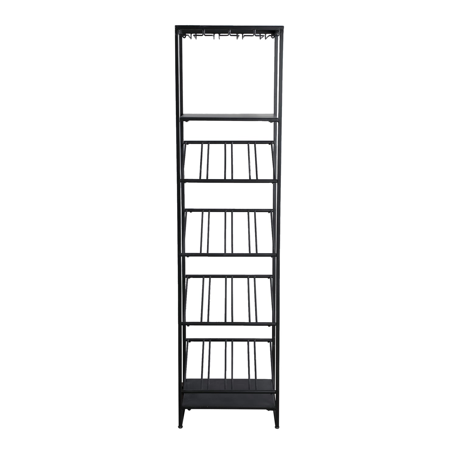 Zalig Black Iron Winerack Glasses And Bottles Rect