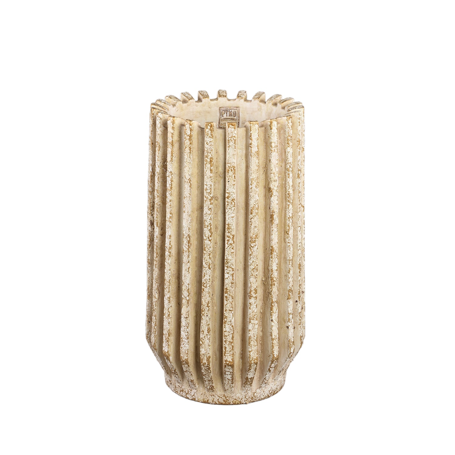 Zariya Cream Cement Round Pot Ribbed Lines High S