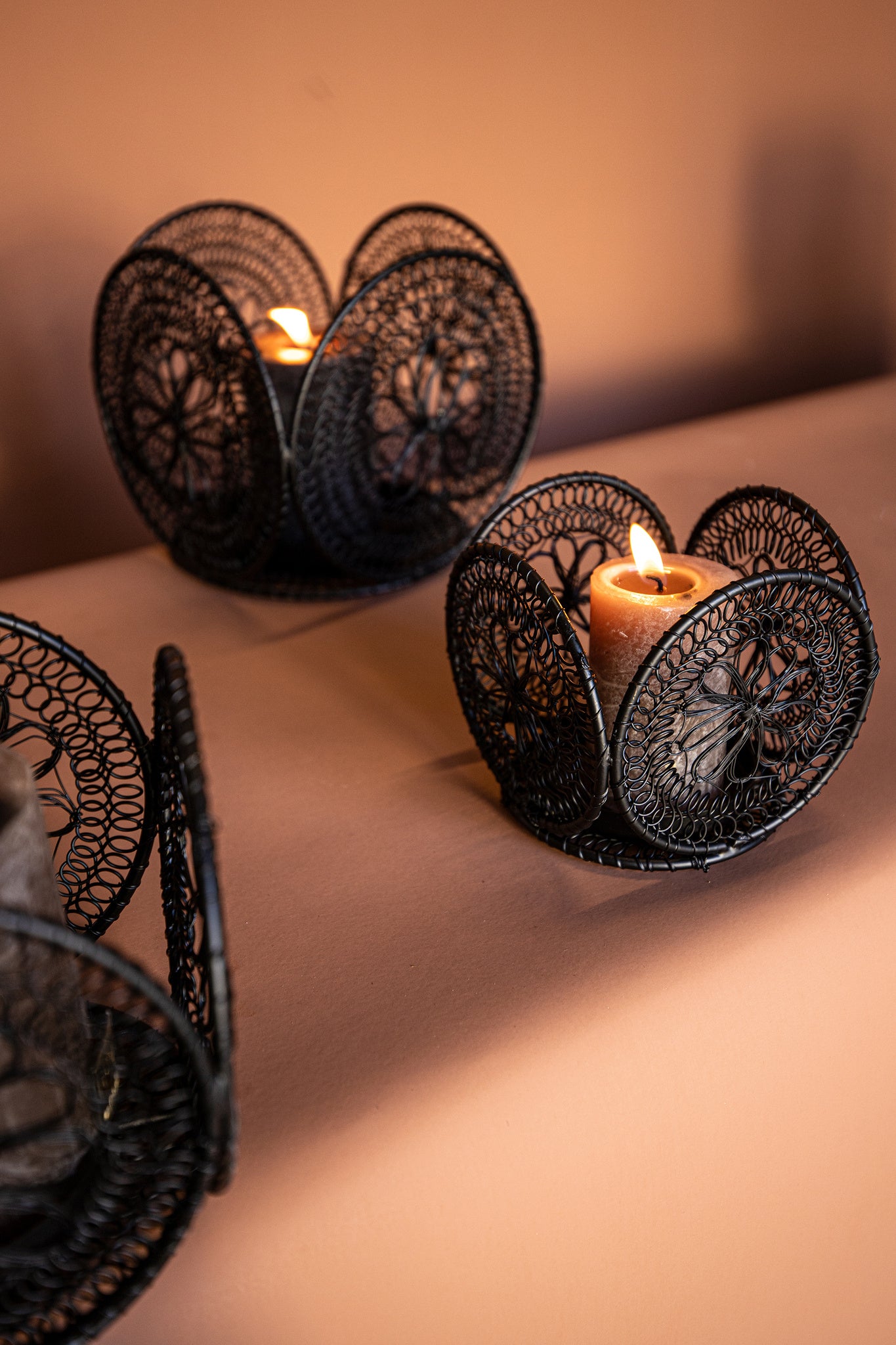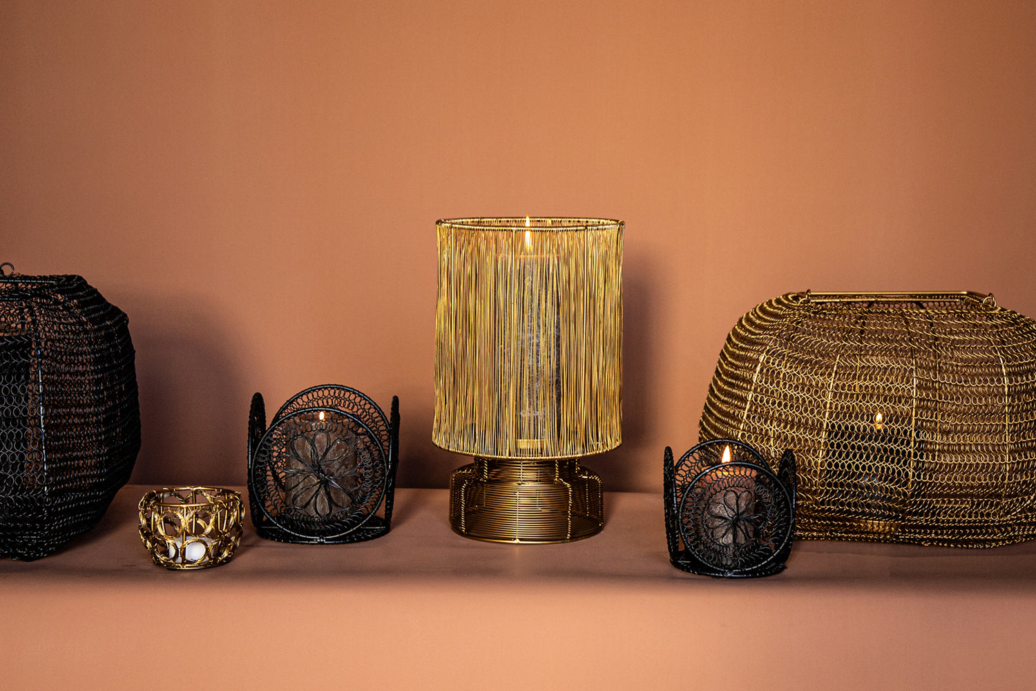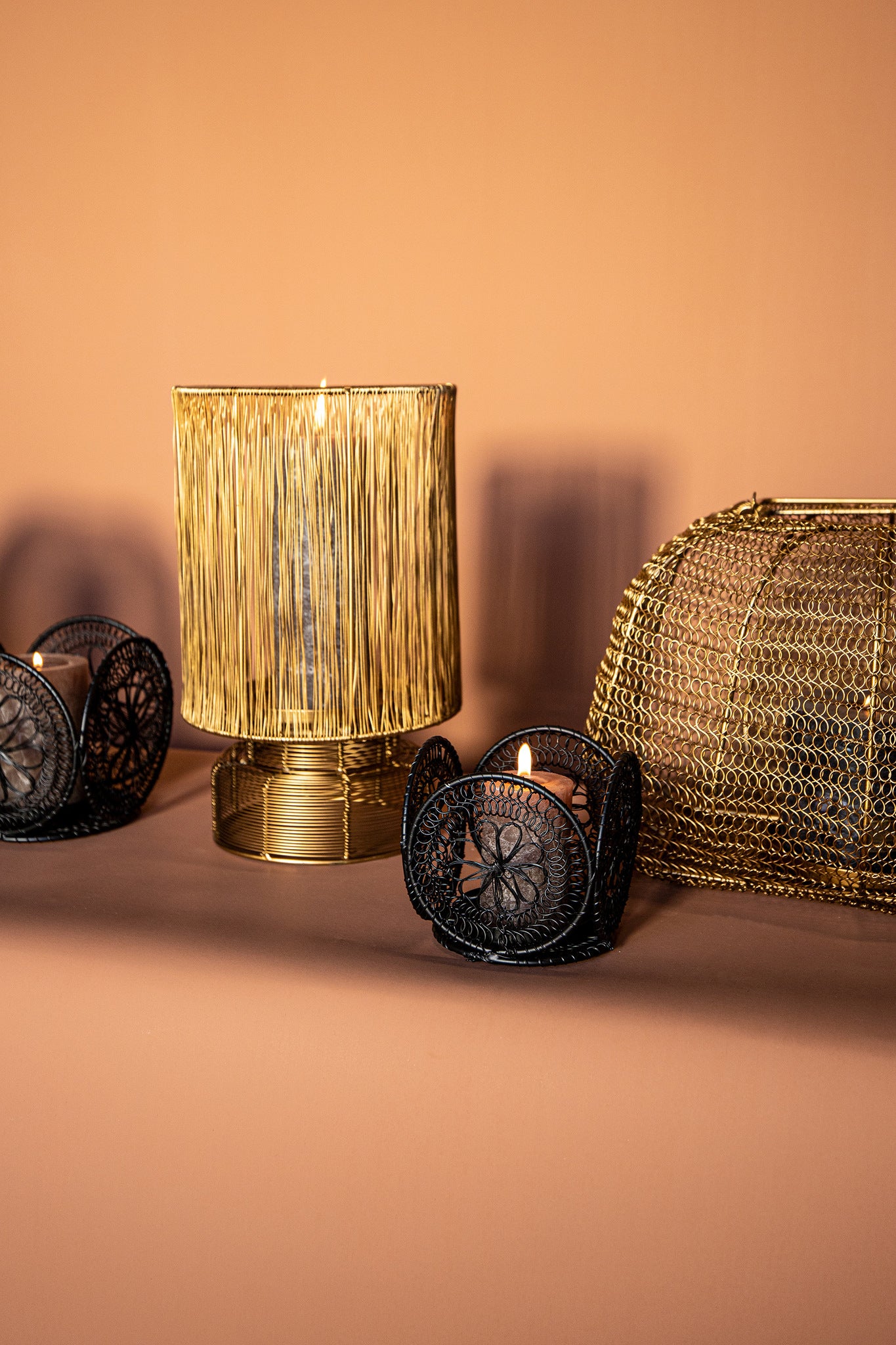 Desh Black Metal Woven Wired Stormlight Set Of 3