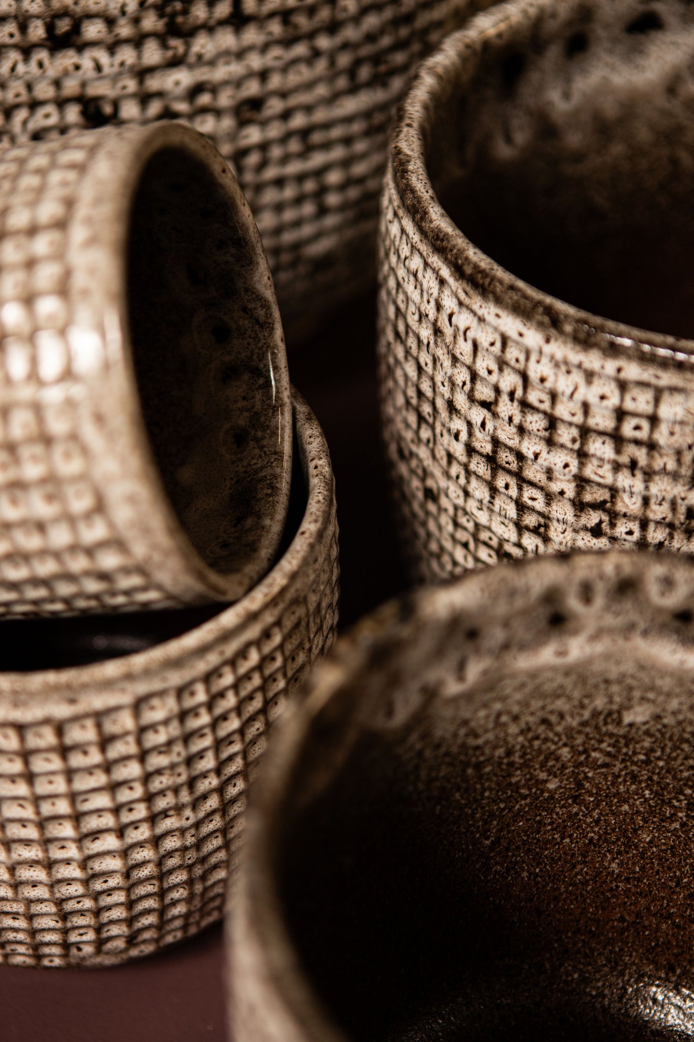 Elana white round ceramic pot with grey pattern l