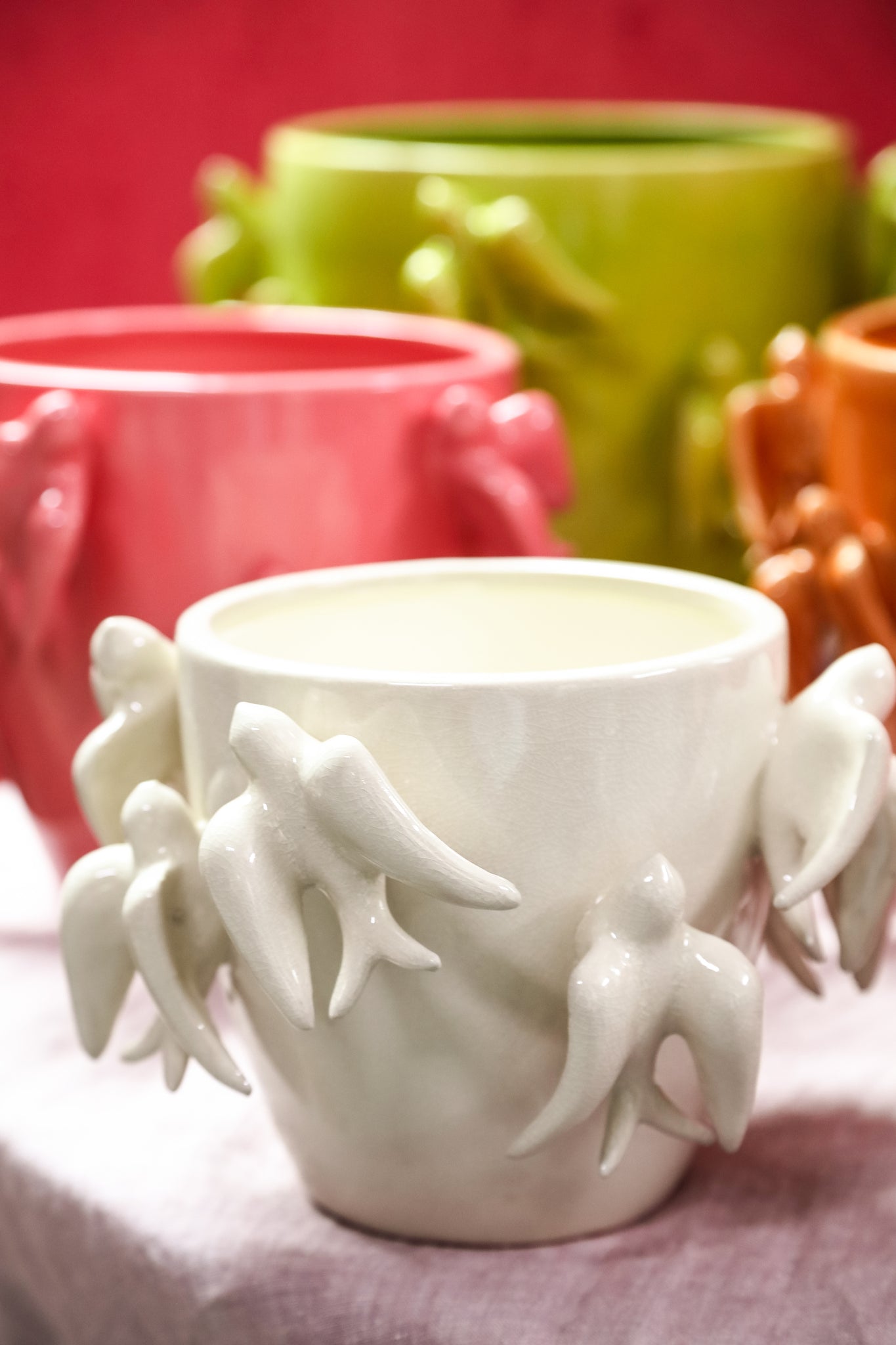 Emmelyn white round ceramic glazed pot birds l