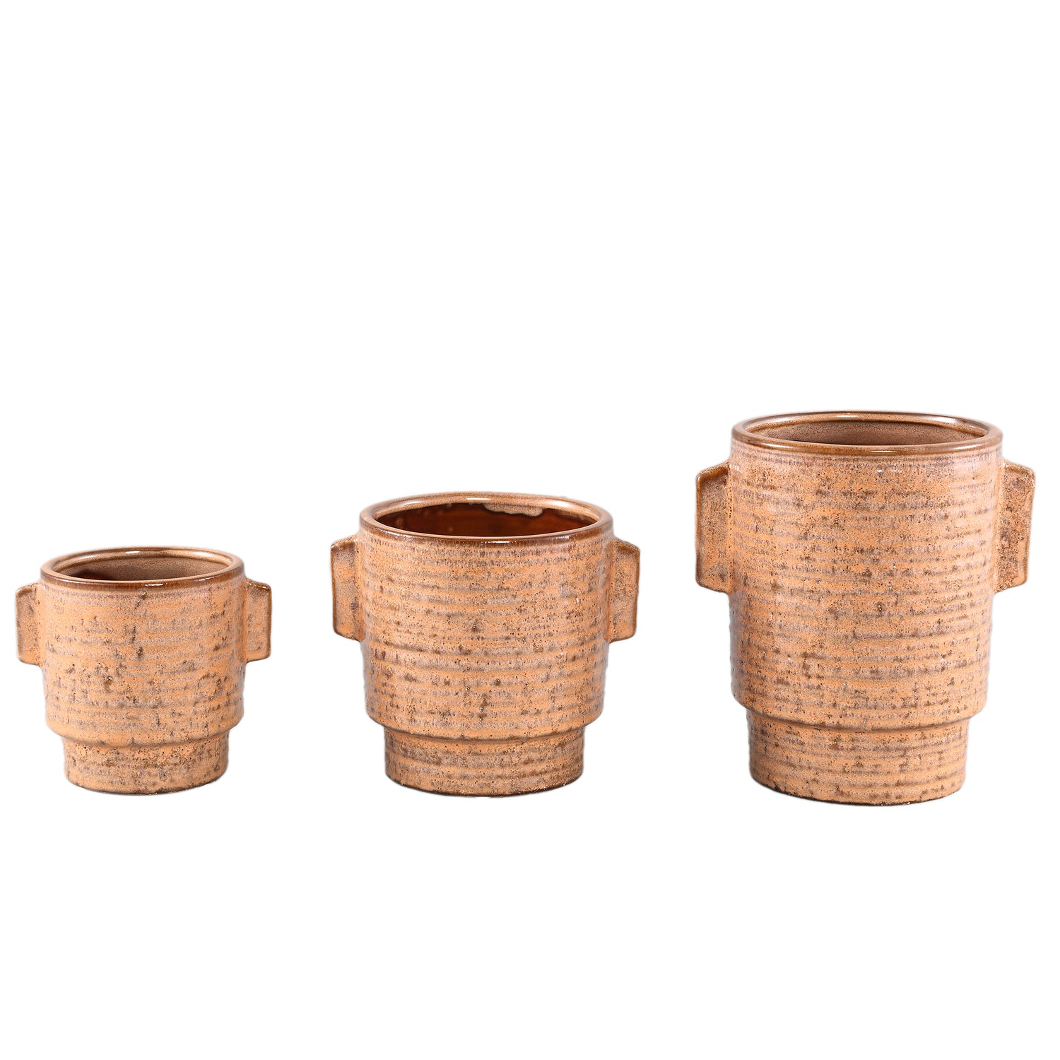 Katelynn Orange Glazed Ceramic Pot Ears Round M