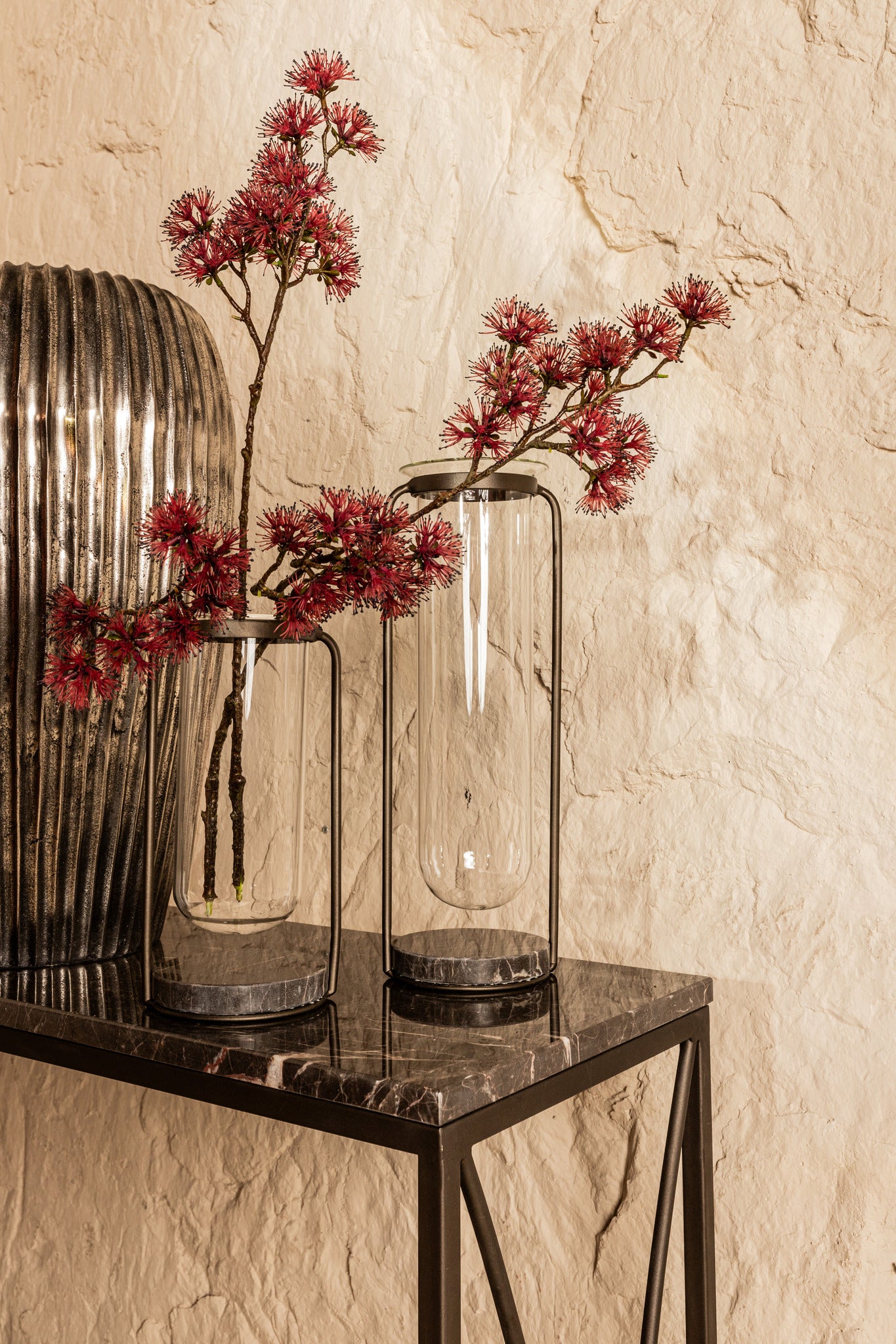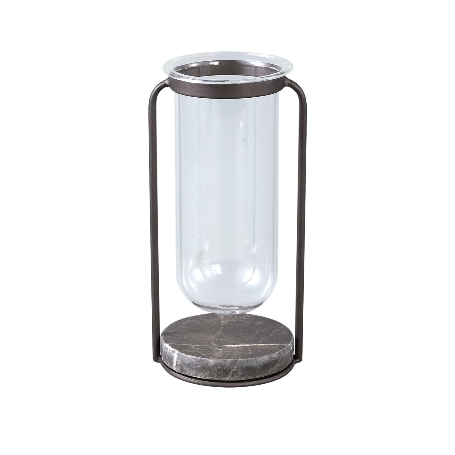 Kirsa Black Round Glass Vase Metal Marble Holder S