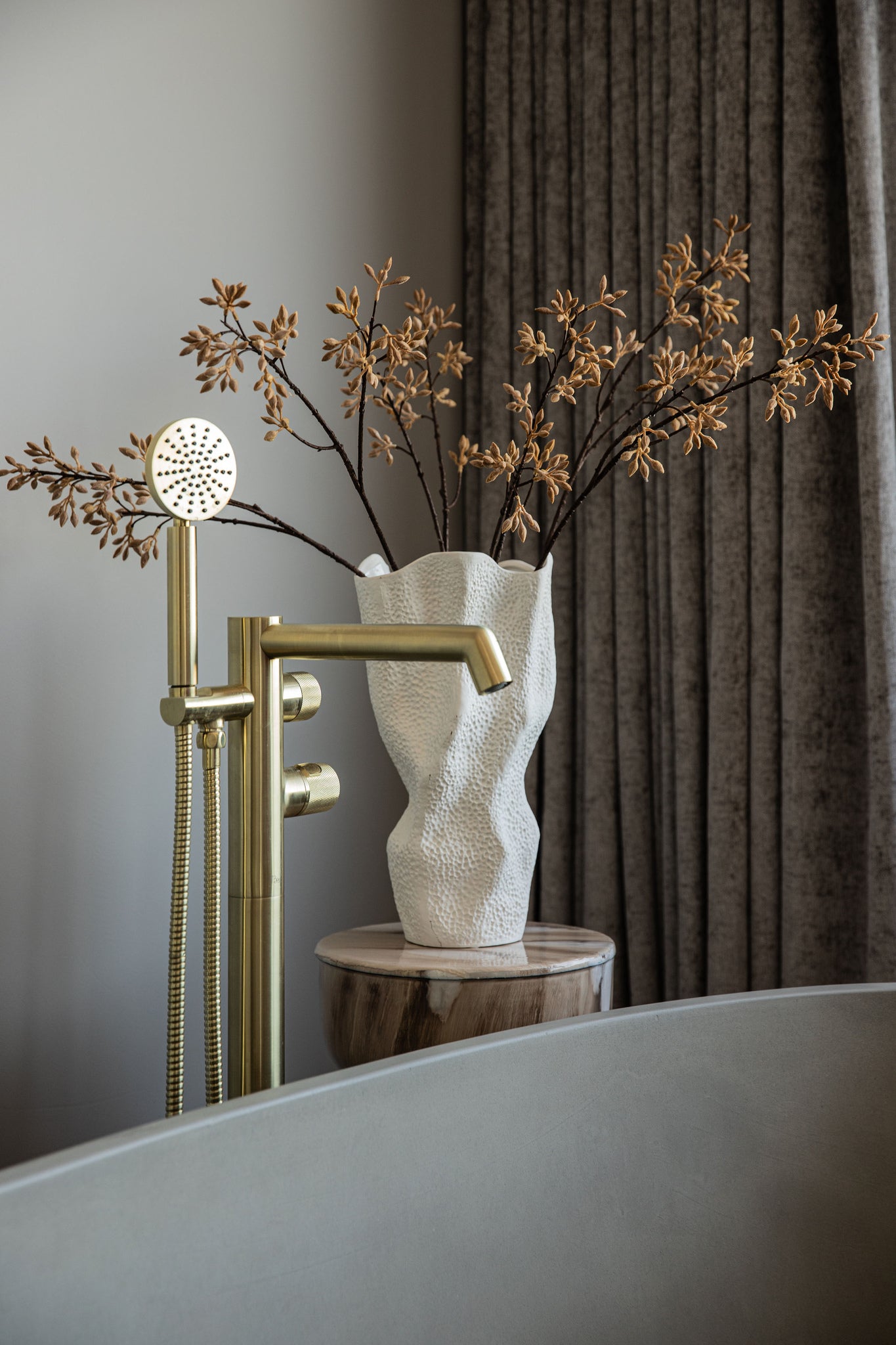 Violettee White Ceramic Wavy Vase Dot Pattern L