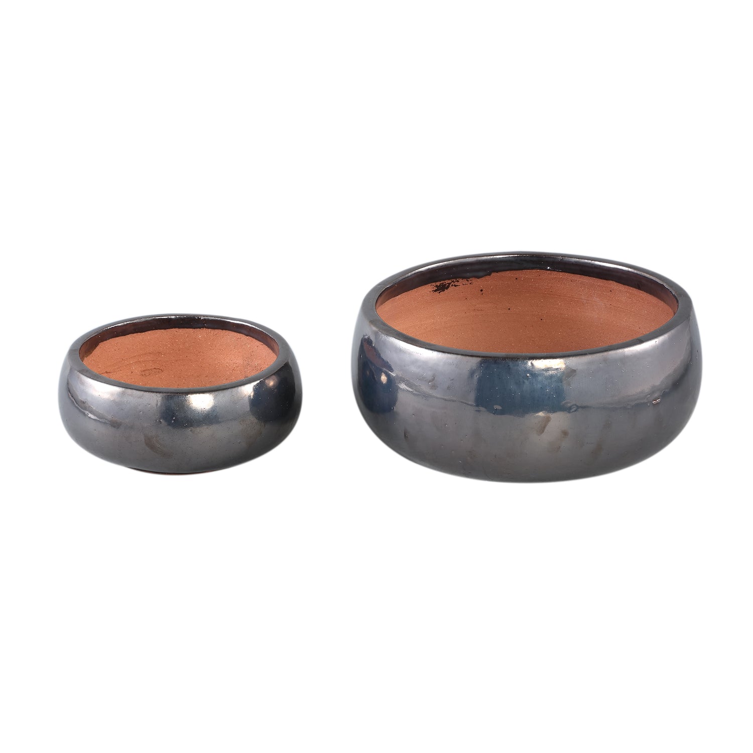Nayaa silver ceramic pot round low sv2