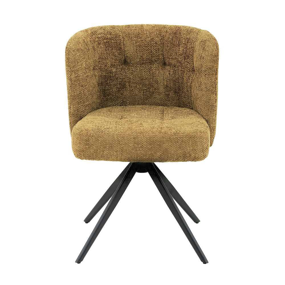 De draaibare PTMD Odin stoel straalt serene eenvoud uit met zijn zachte stoffering en moderne, afgeronde vormgeving. De combinatie van rijke en aardse kleuren geeft deze stoel een warme, rustgevende uitstraling. Het zwarte metalen frame zorgt voor een stijlvol contrast en een stevige basis. Perfect voor wie luxe comfort wil combineren met een minimalistische look in de eetkamer of woonruimte.