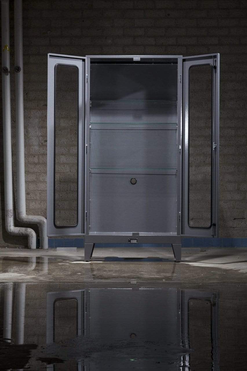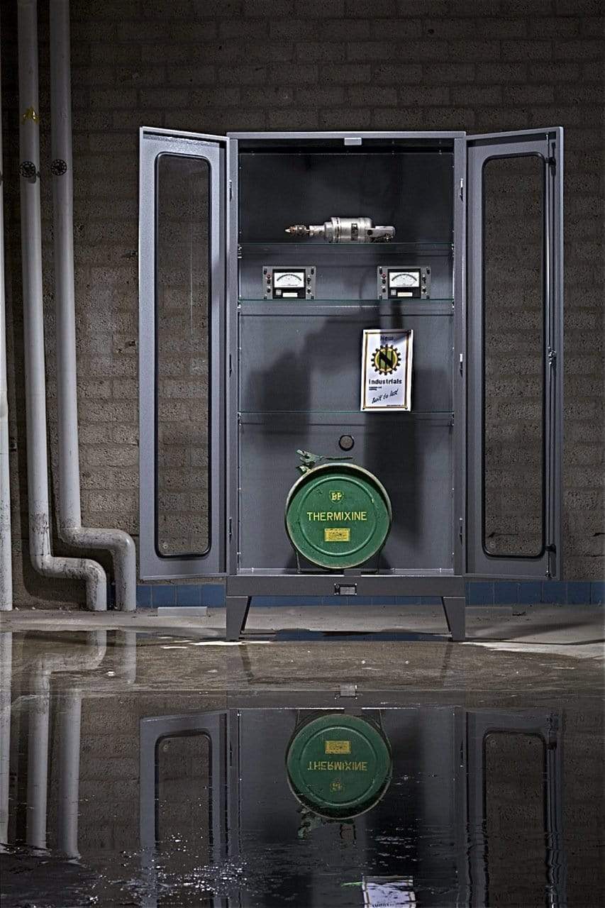Robuuste metalen industriële kast ontworpen volgens Nederlands design.