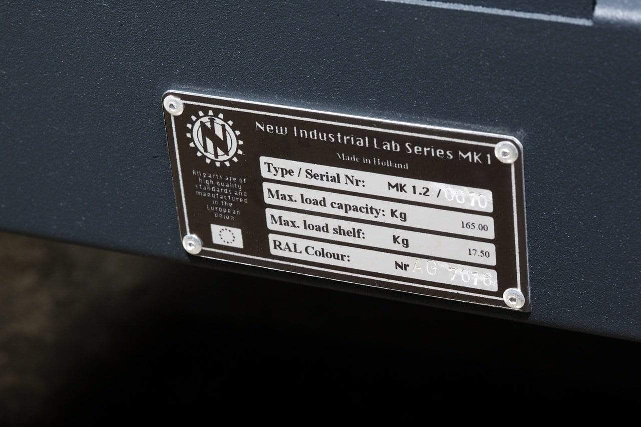 Voor de finishing touch is er een typleplaatje gemonteerd aan de kast met serienummer om de industriële authenticiteit mee te geven.