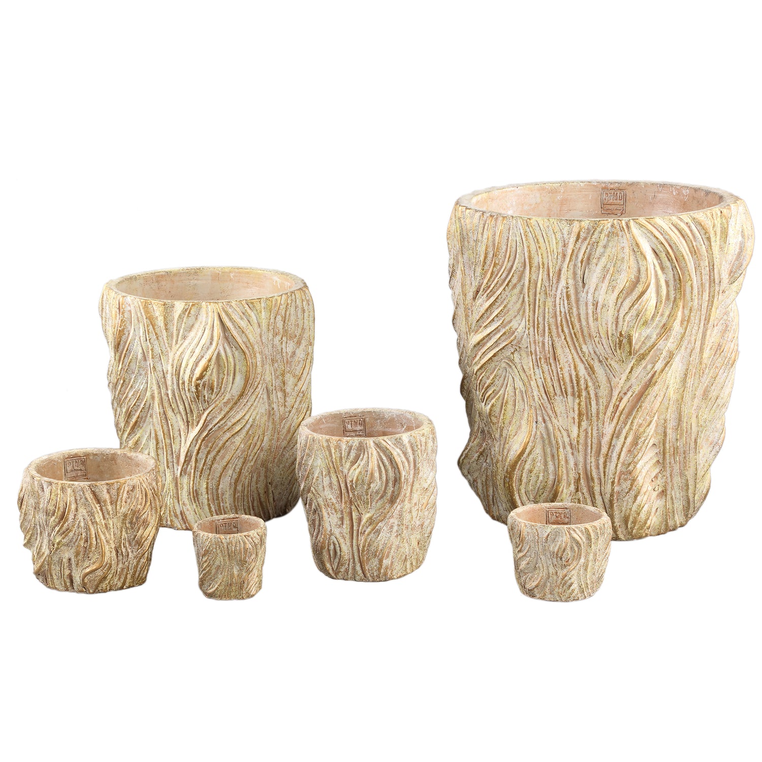 Alexio Cream Round Cement Pot Wavy Lines Low XL