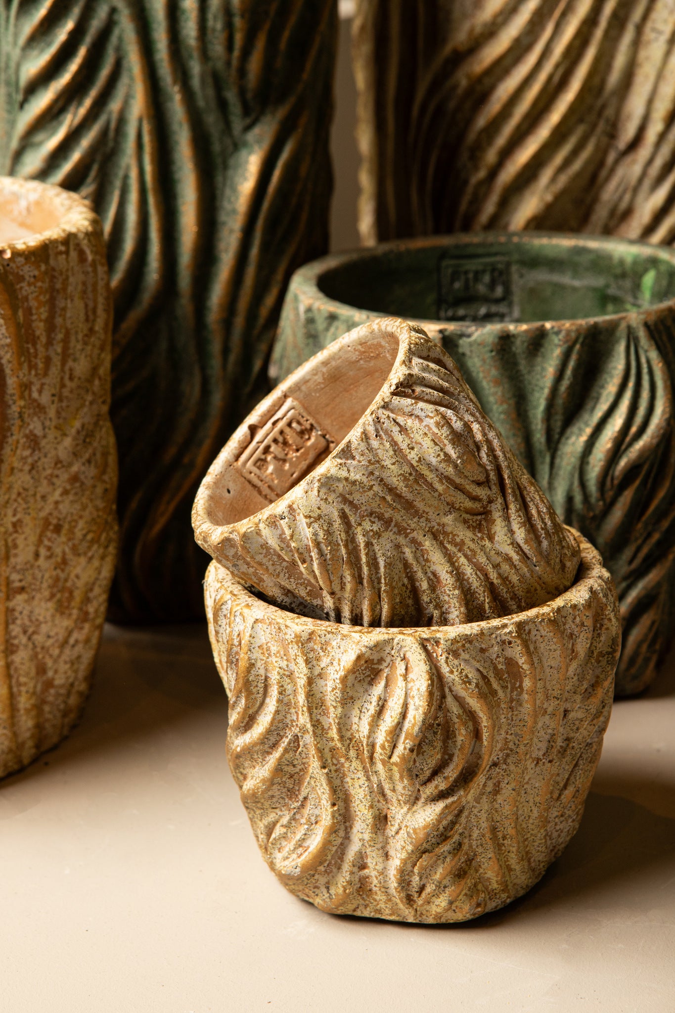 Alexio cream round cement pot wavy lines low xl