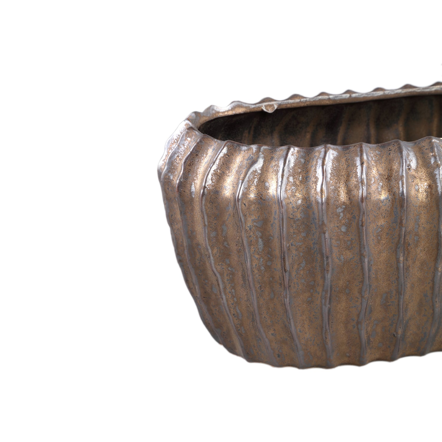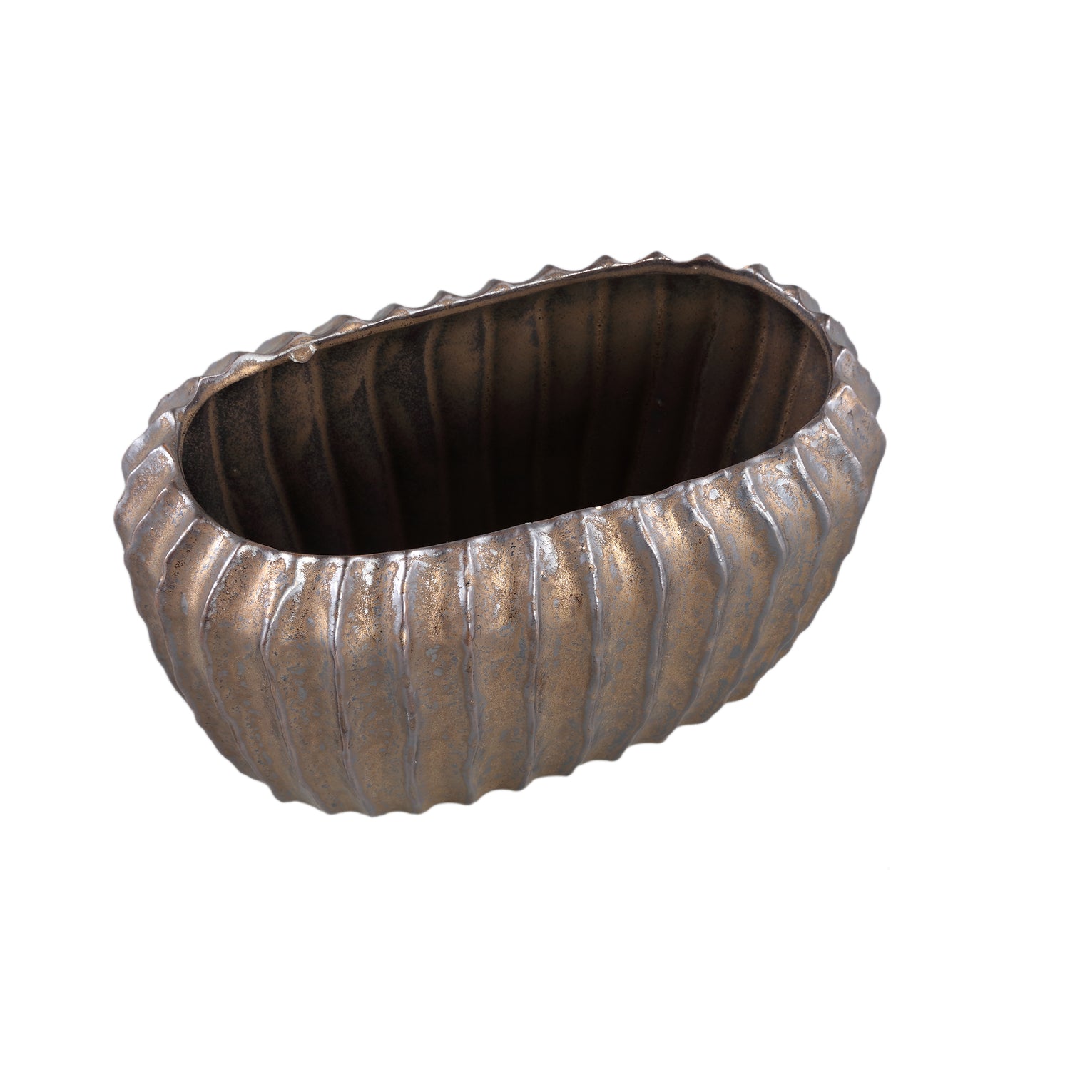 Bodi Bronze Ceramic Pot Oval Ribbed L