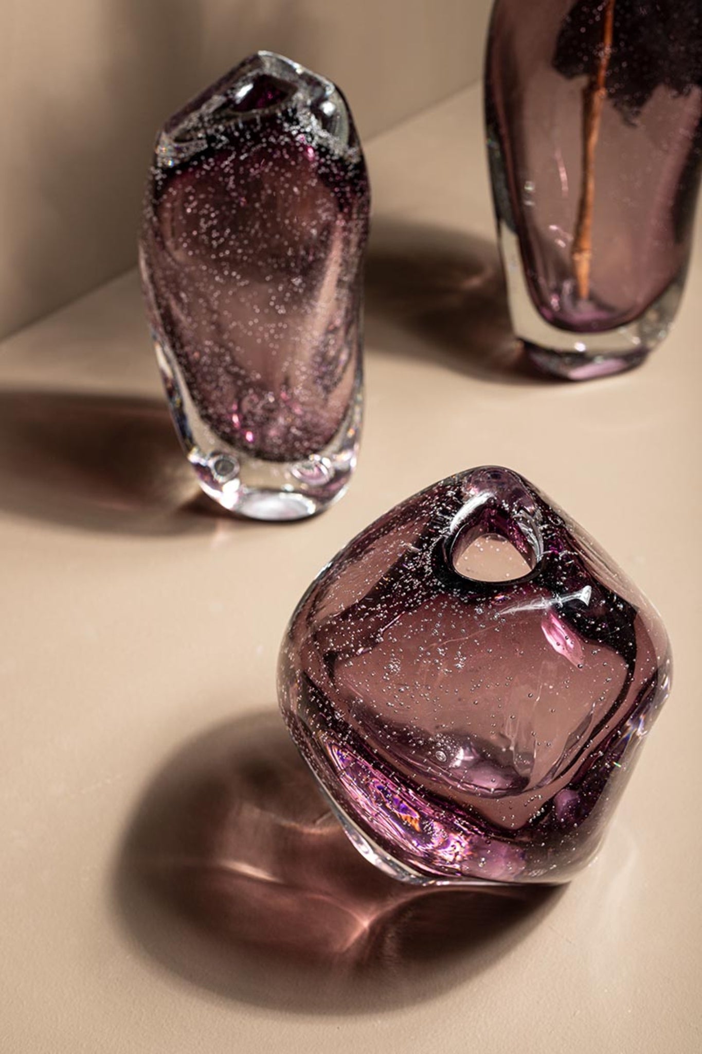 Bryce Purple Thick Angular Glass Vase Wide Low