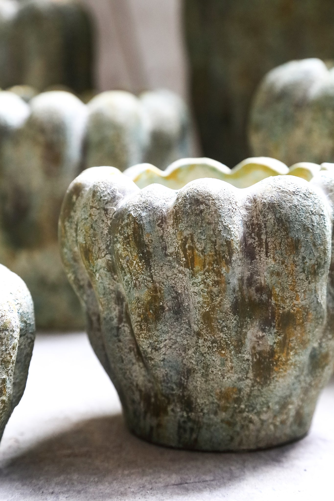 Contina Green Round Cement Pot Thick Wavy XL